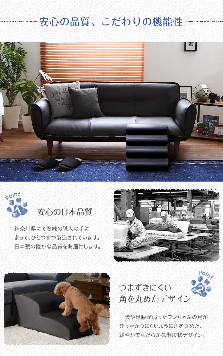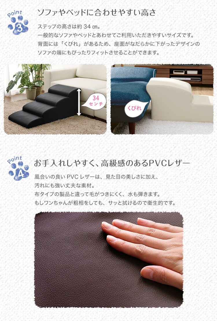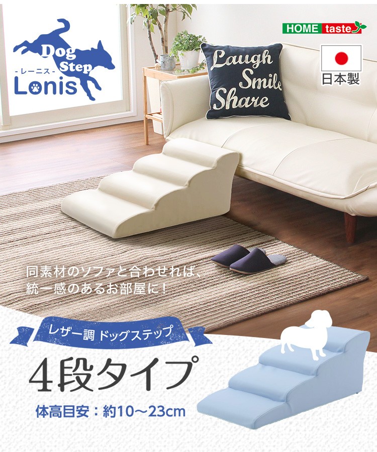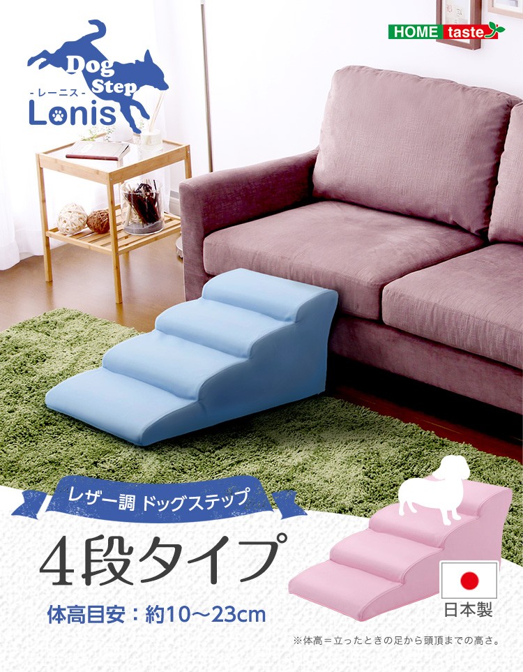 日本製ドッグステップPVCレザー、犬用階段4段タイプ【lonis-レーニス-】