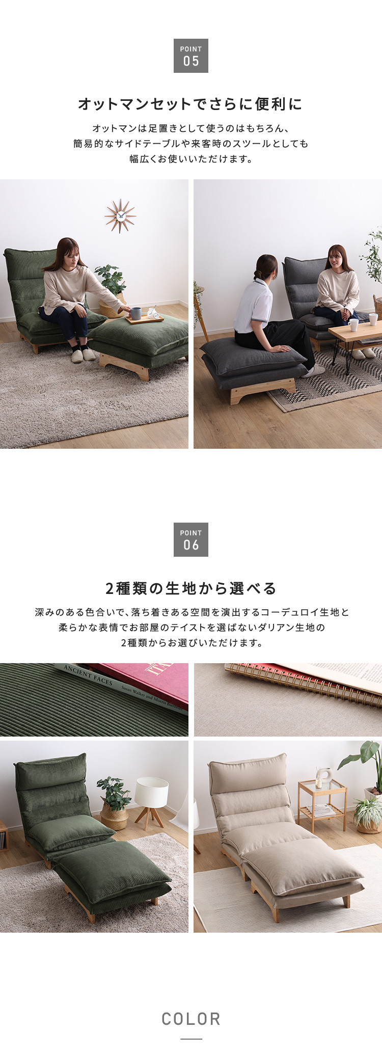 リクライニングソファ オットマンセット おしゃれ 北欧