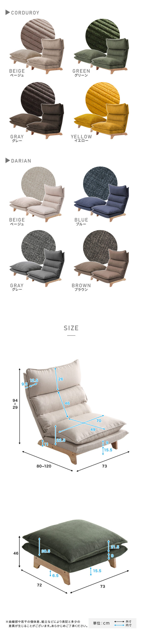 D/ベージュ, コーデュロイイエロー, コーデュロイグリーン, コーデュロイグレー, コーデュロイベージュ, ダリアングレー, ダリアンブラウン, ダリアンブルー