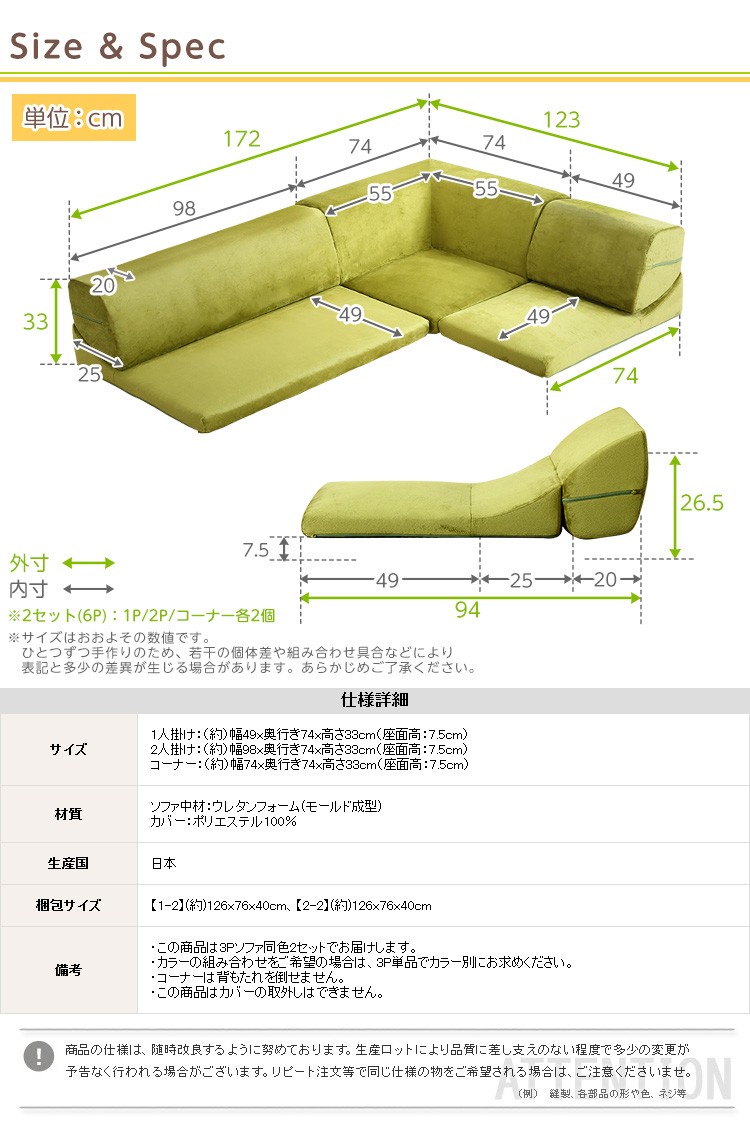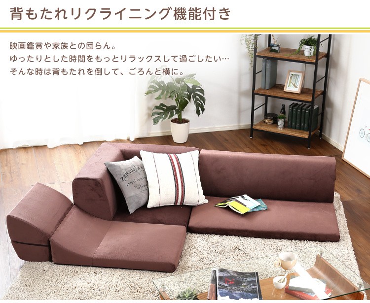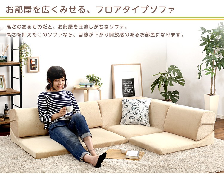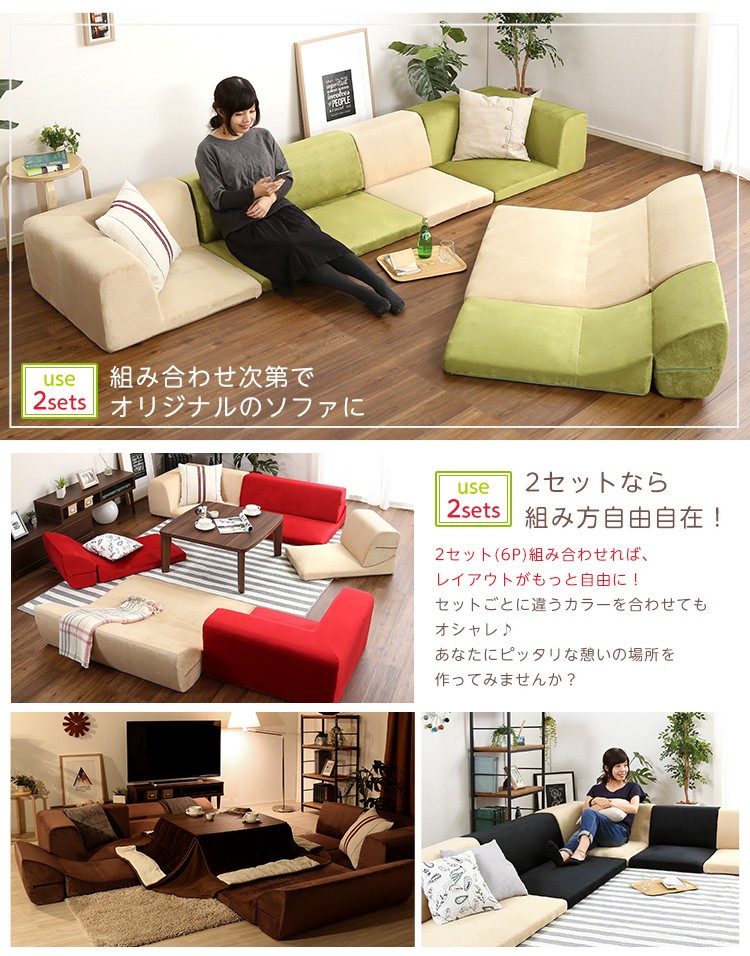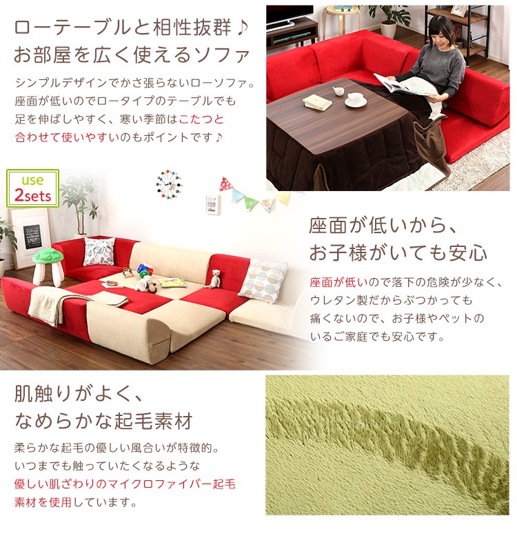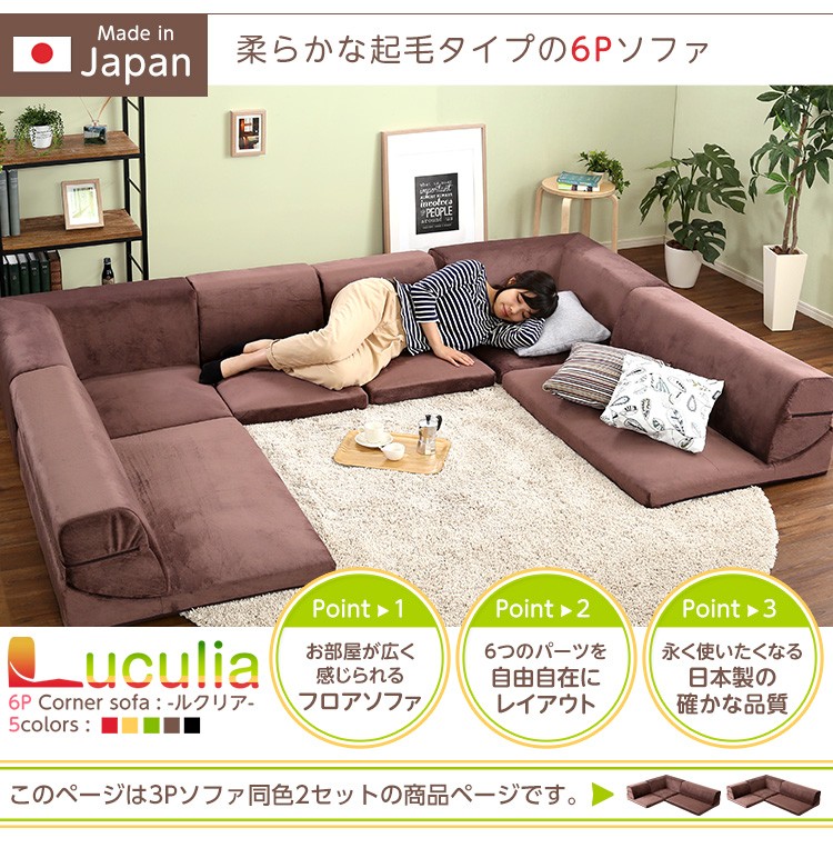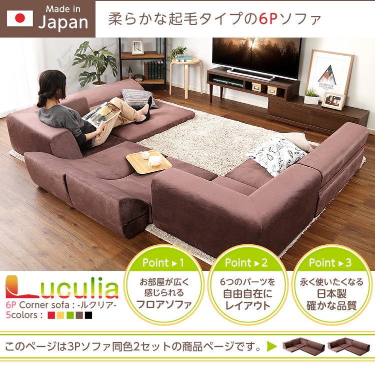 フロアソファ 3人掛け ロータイプ 起毛素材 日本製 (5色)同色2セット|Luculia-ルクリア-