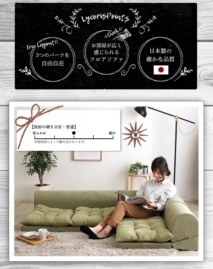 インテリア ソファ 3人掛けソファ フロアソファ