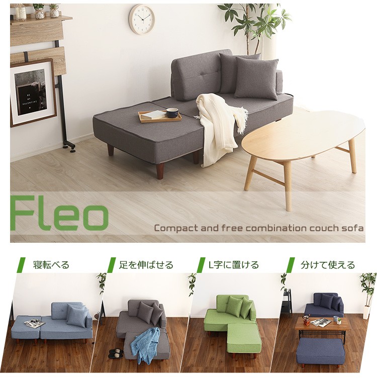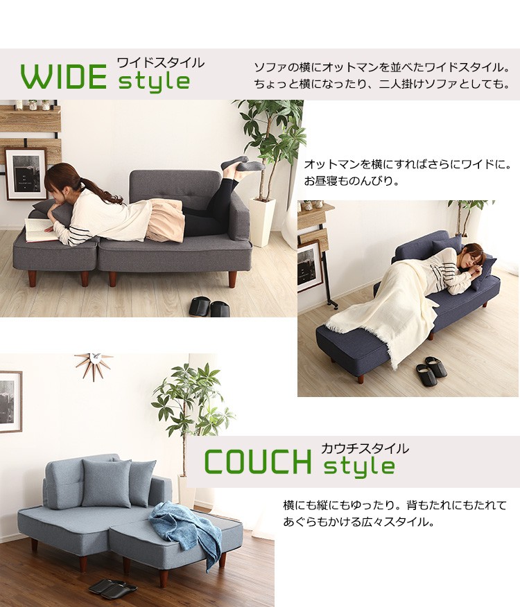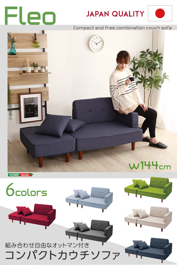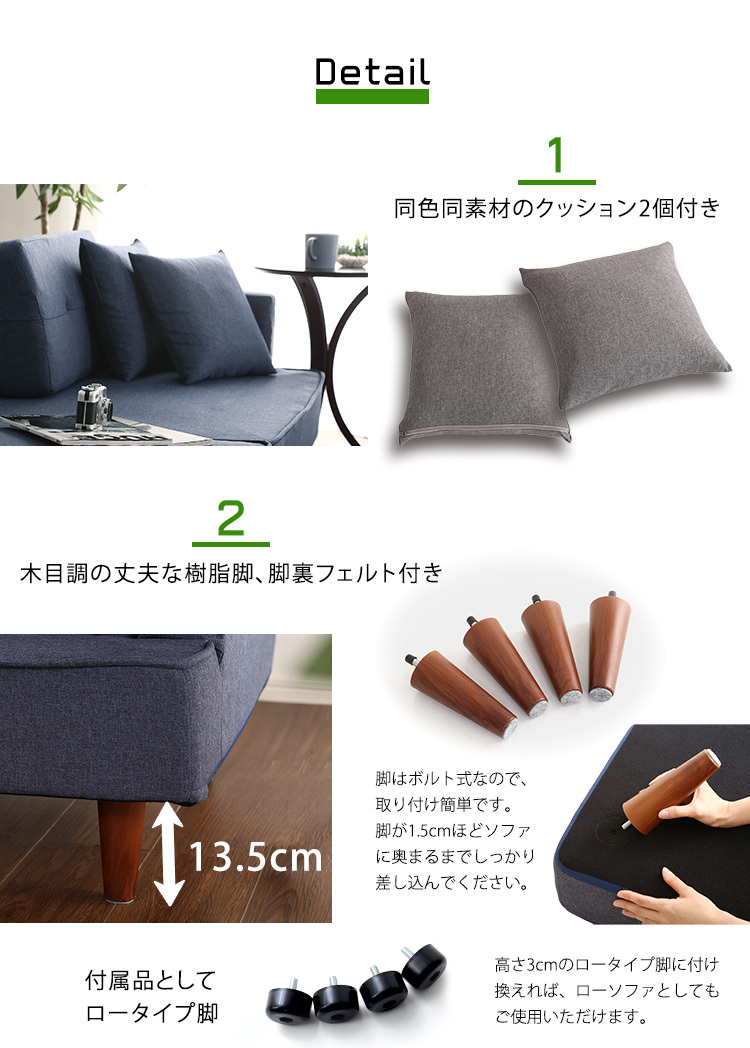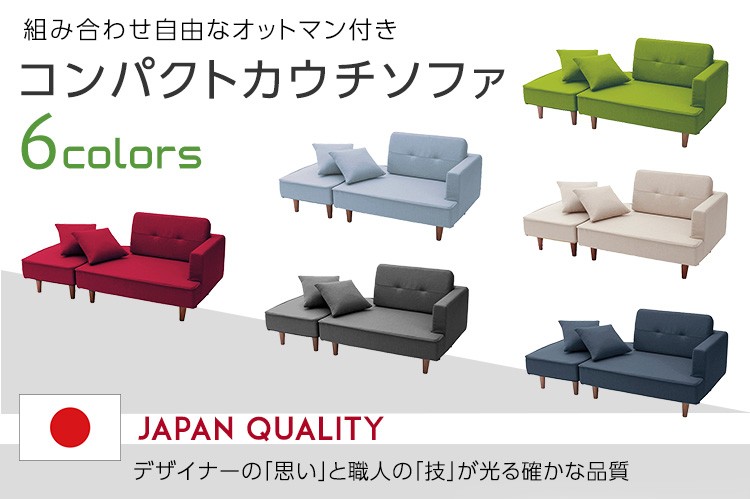 カウチソファ コンパクト ポケットコイル 2人掛け