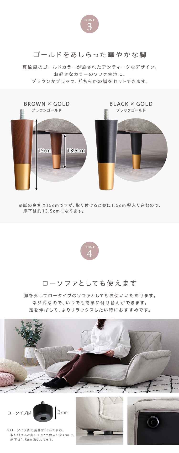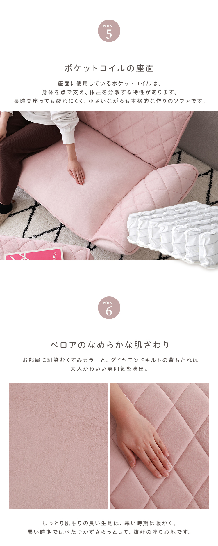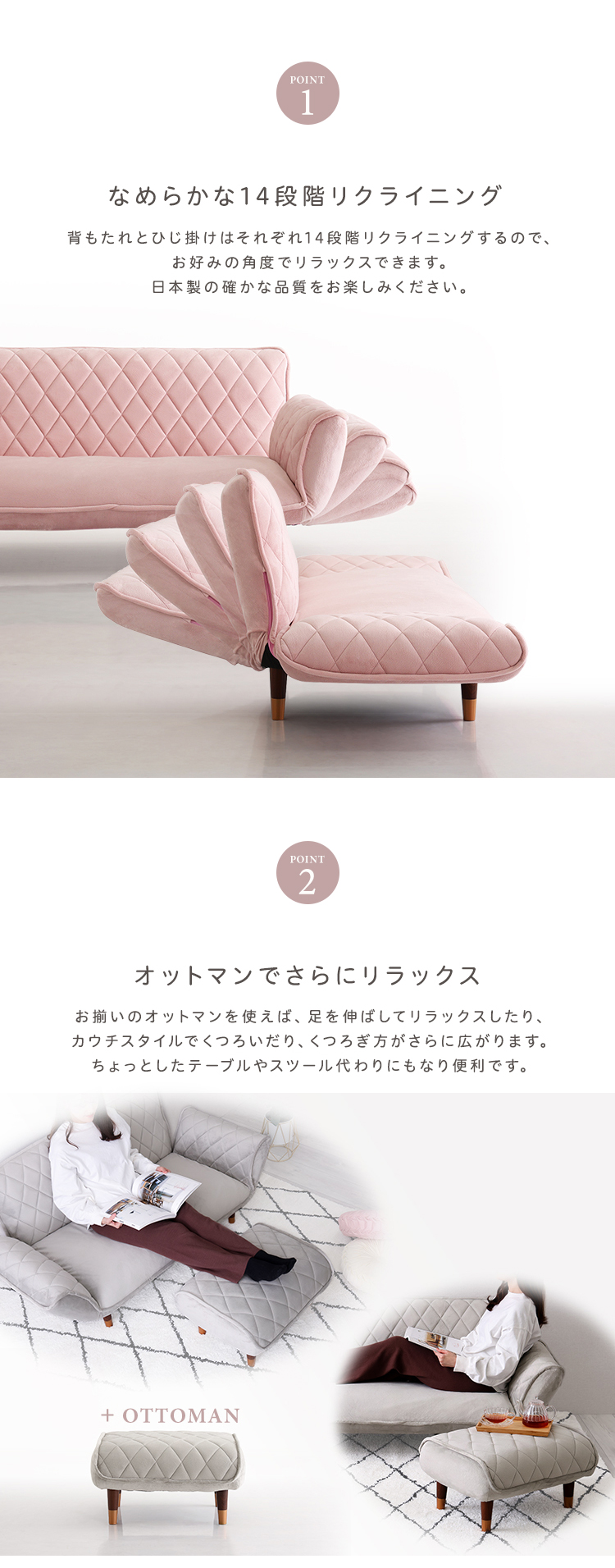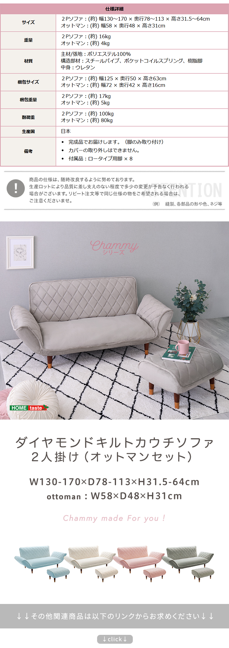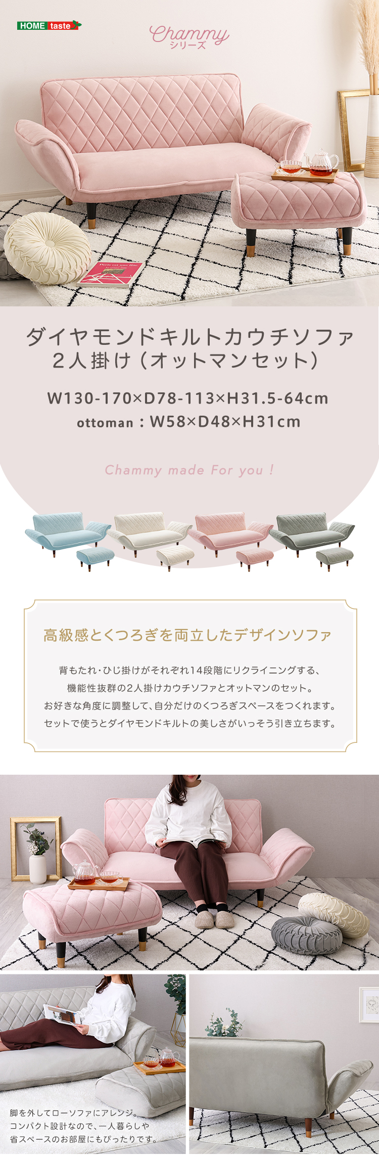 大人かわいい ダイヤモンドキルトカウチソファ オットマンセット 【Chammy -チャミー-】