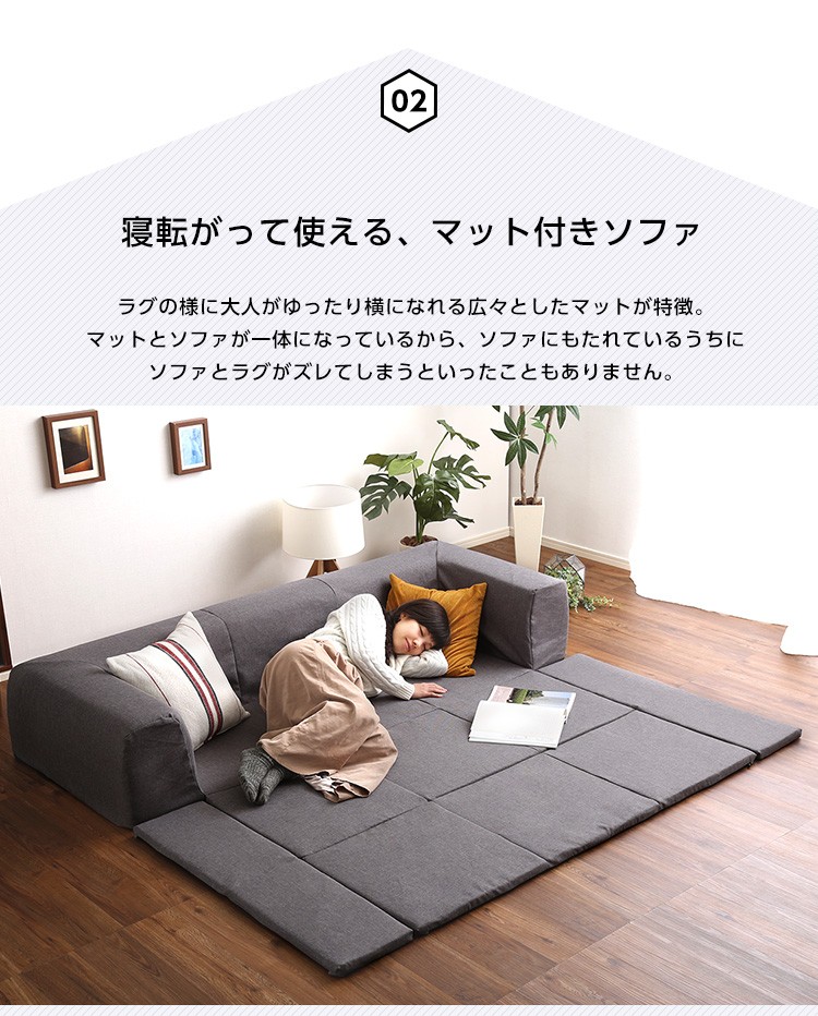 フロアマット付きソファMサイズ(幅200cm)お家で洗えるカバーリングタイプ | Plateau-プラトー-