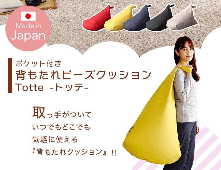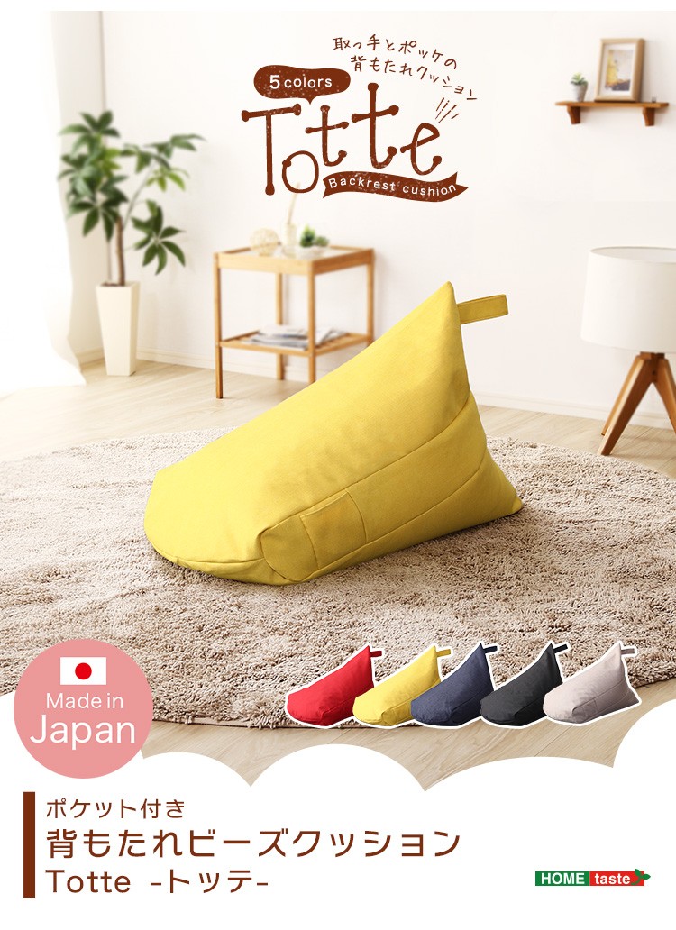 ポケット付き 背もたれビーズクッション 【Totte -トッテ-】