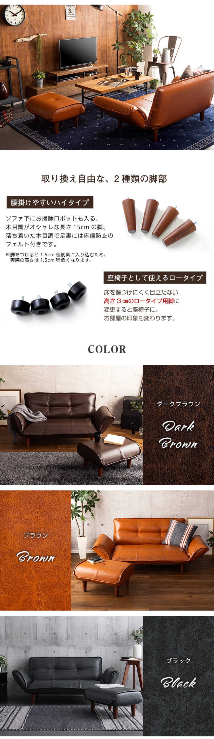 グレー, ダークブラウン, ブラウン, ブラック
