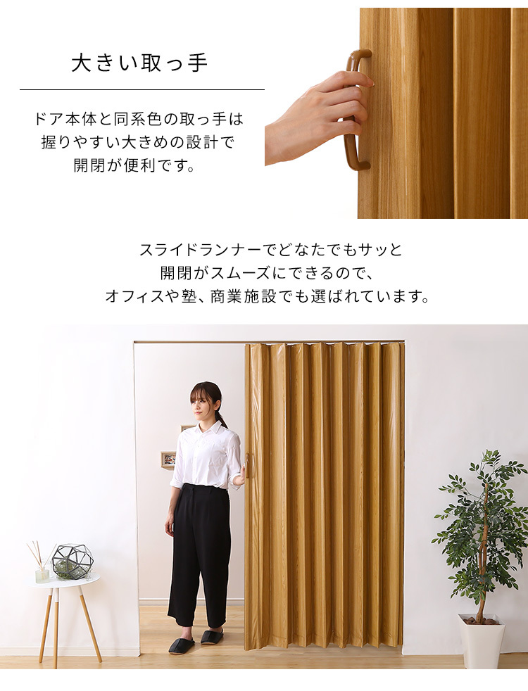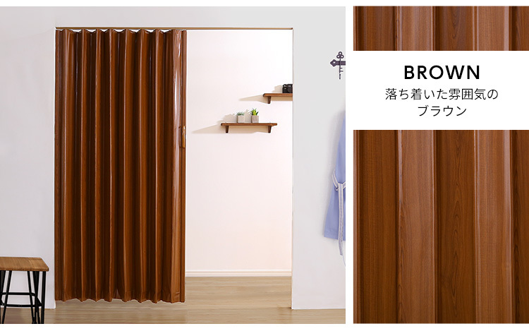 アコーディオンドア 木目柄 カーテン 幅100cm