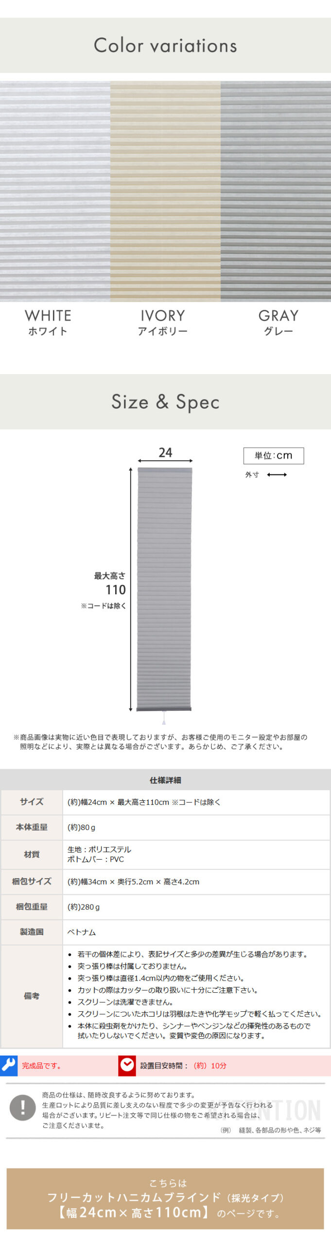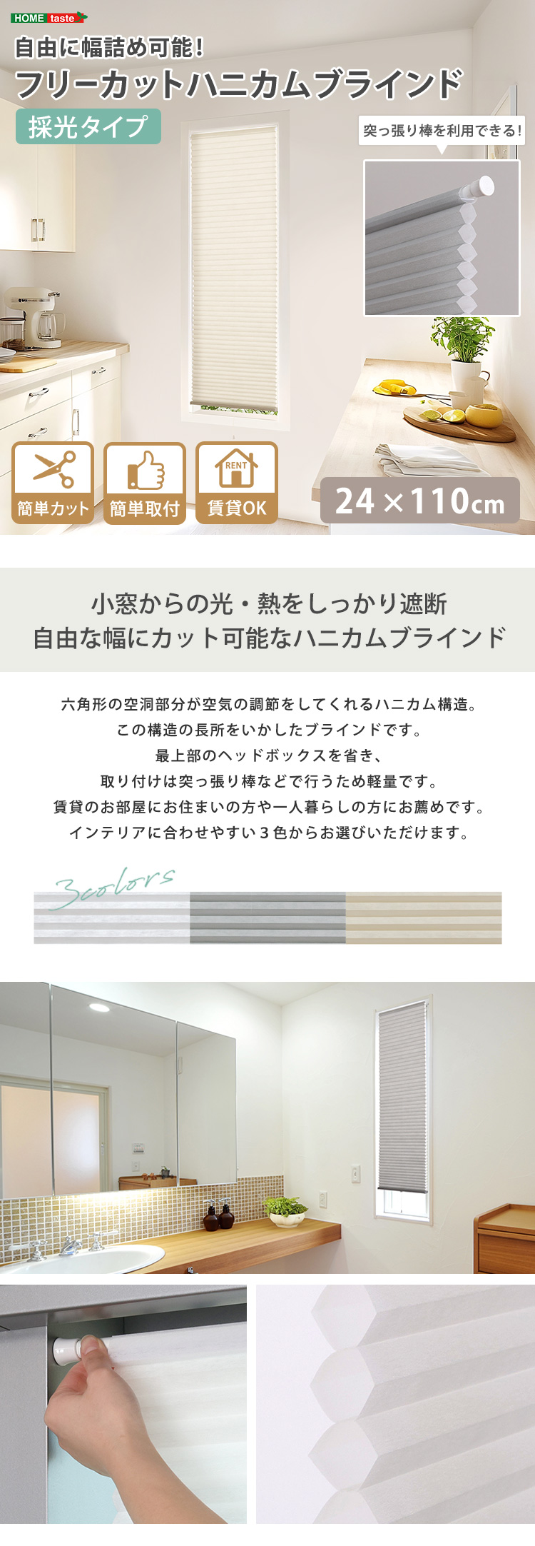 ハニカムシェード つっぱり DIY 小窓 保温 スリット窓