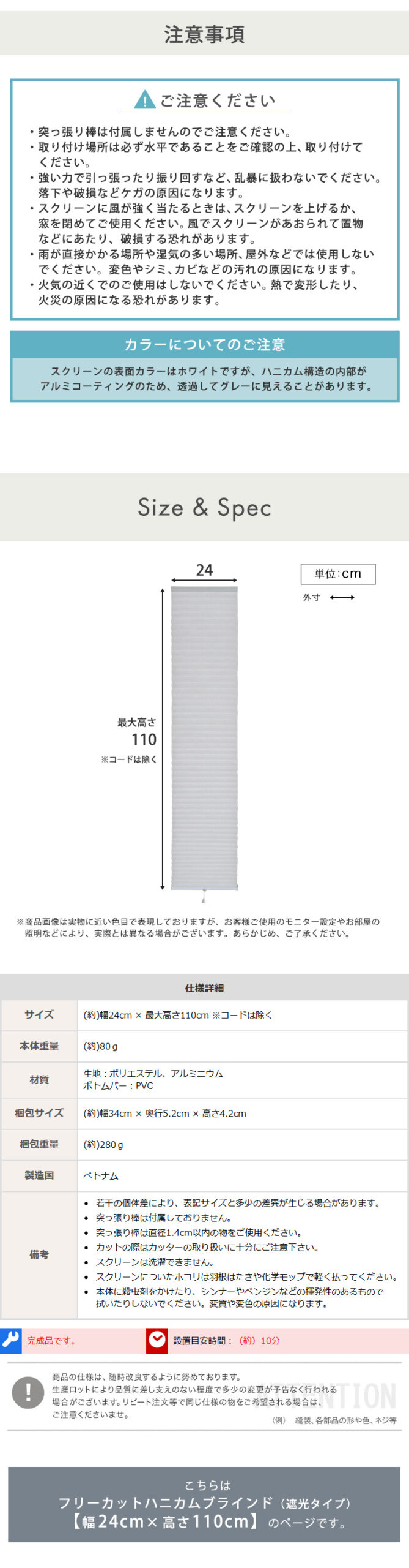 ハニカムシェード つっぱり DIY 小窓 保温 スリット窓