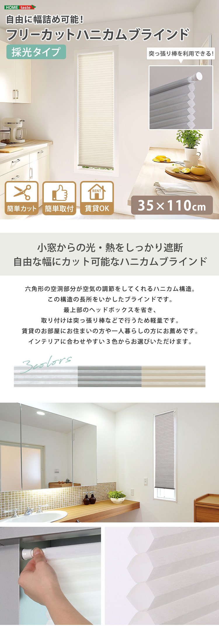 ハニカムシェード つっぱり DIY 小窓 保温 スリット窓