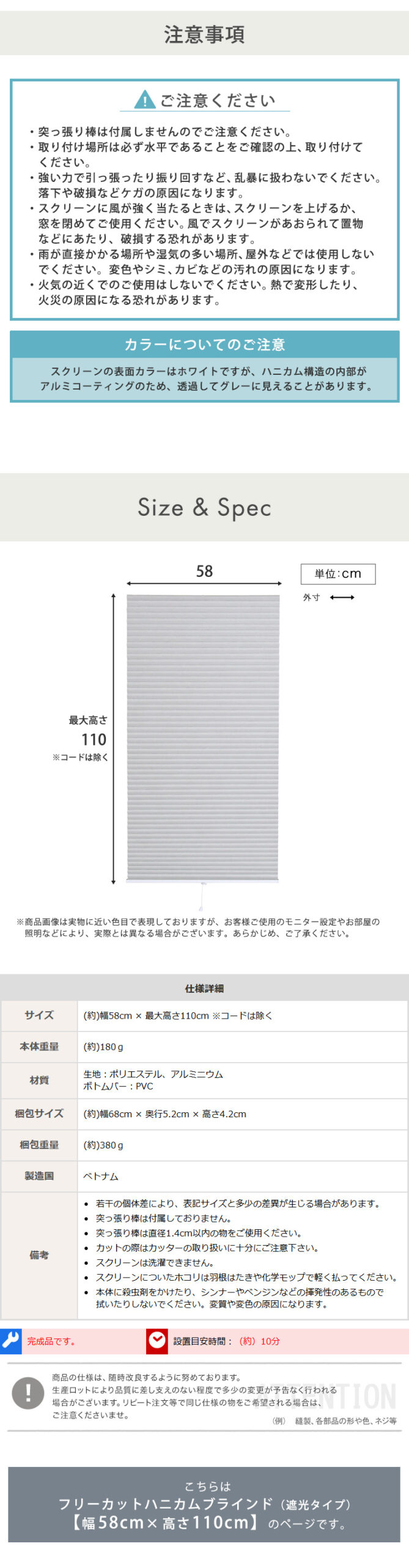 ハニカムシェード つっぱり DIY 小窓 保温 スリット窓