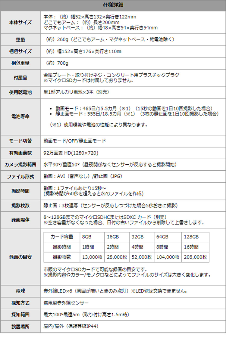 “乾電池式どこでもセンサーカメラ” の口コミを投稿します