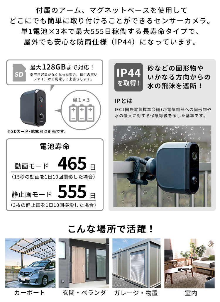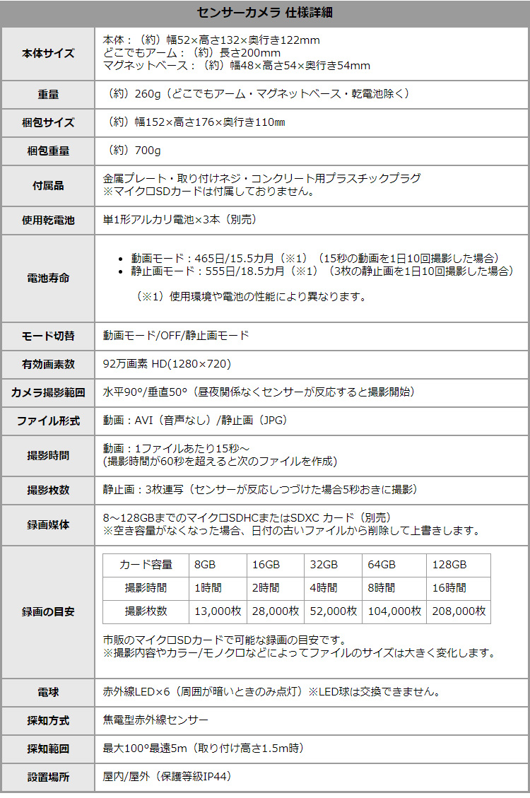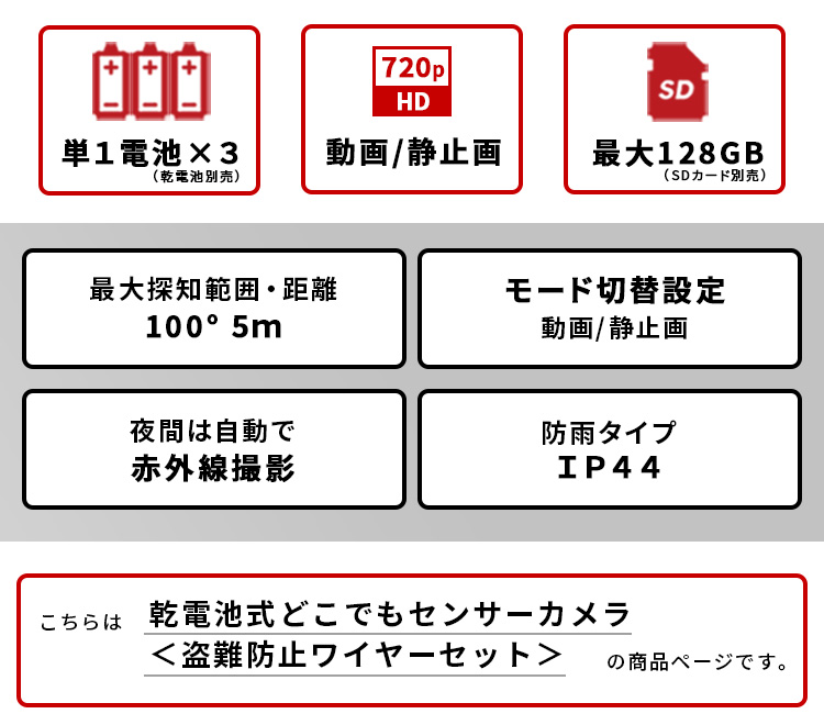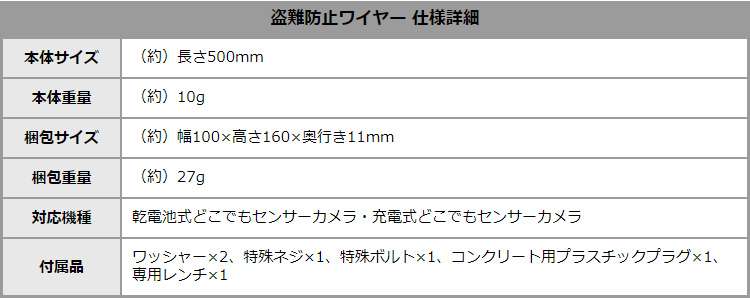 カメラ 防犯カメラ センサーカメラ 盗難防止ワイヤーセット