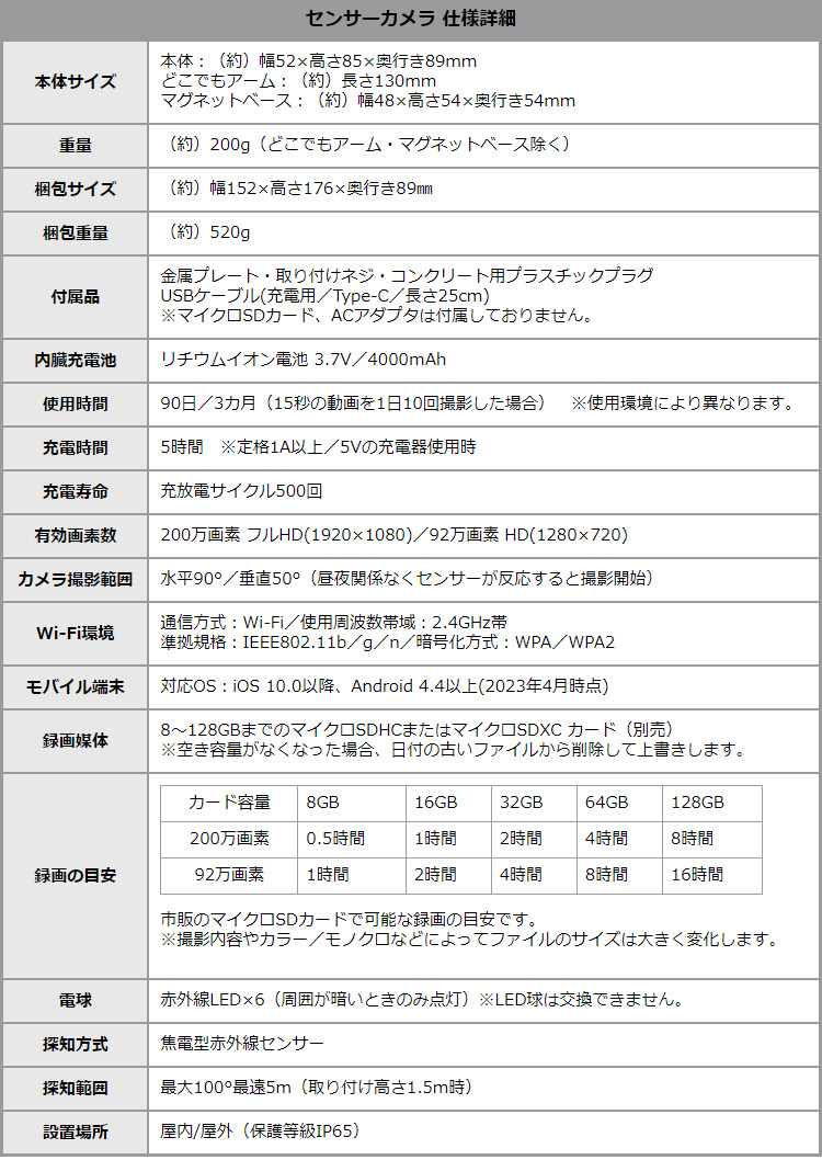 センサーカメラ 防犯 見守り 充電式