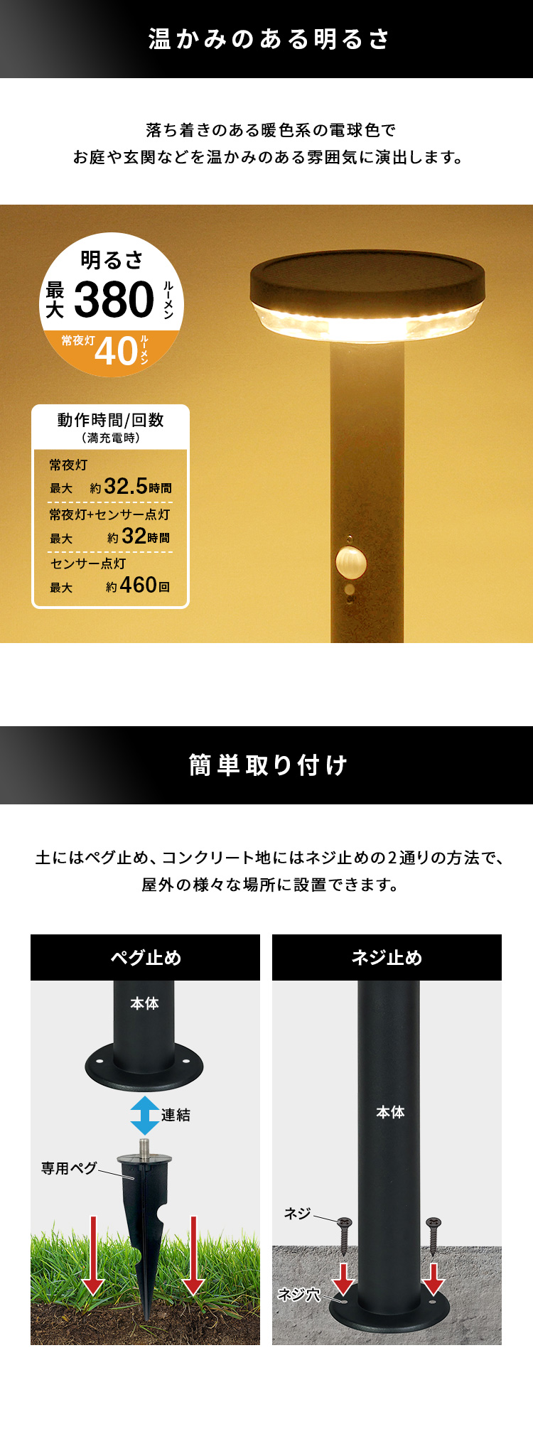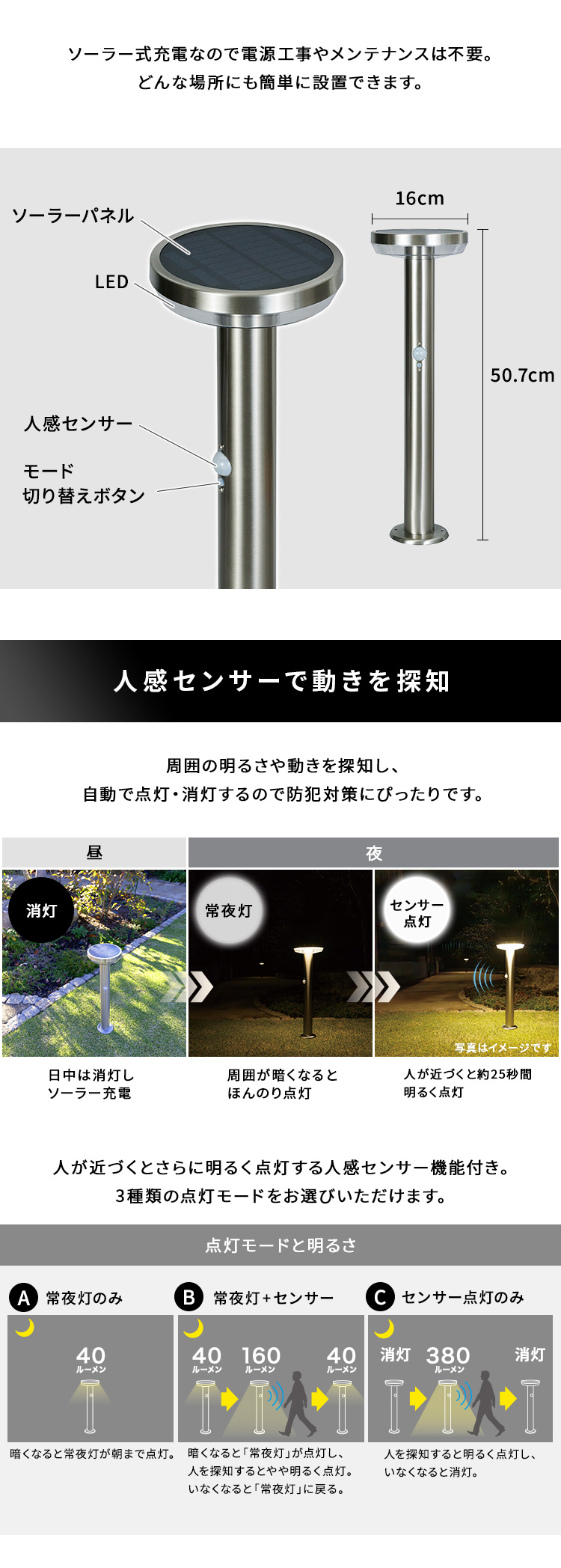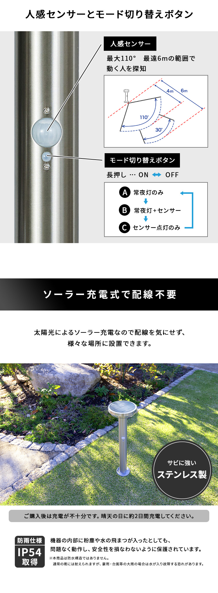 ガーデンライト センサー 発電 簡単 ライト 庭 太陽光