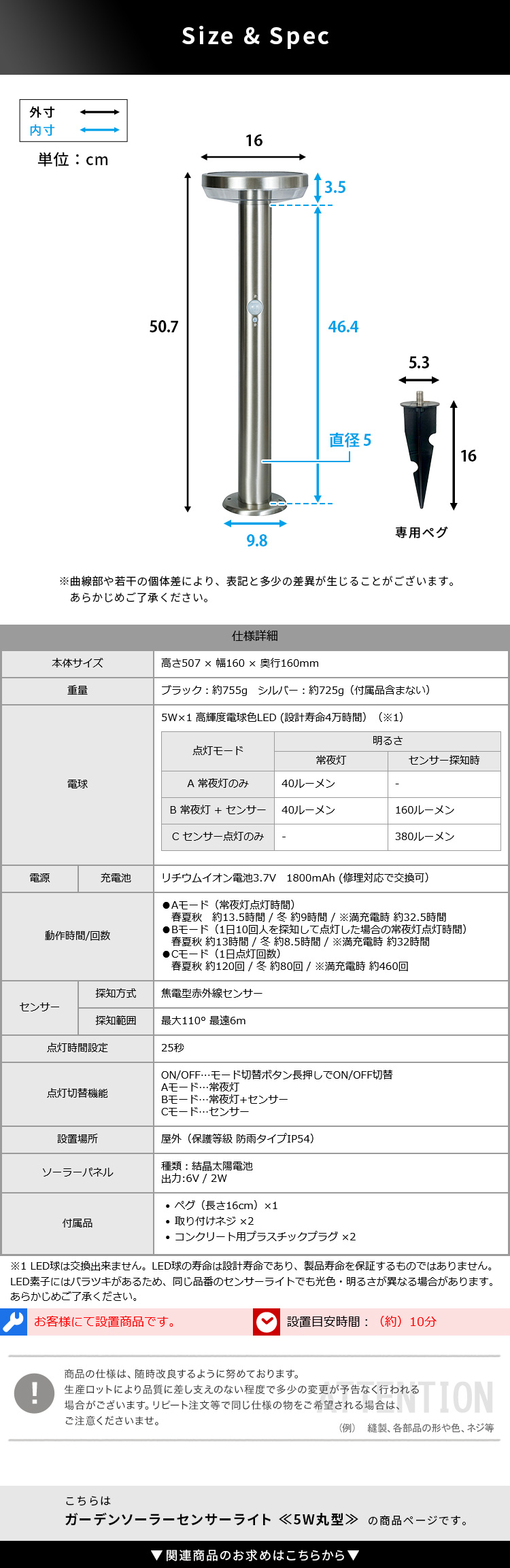 “工事不要!ガーデンソーラーセンサーライト 5W丸型” の口コミを投稿します