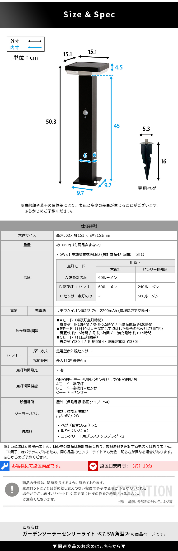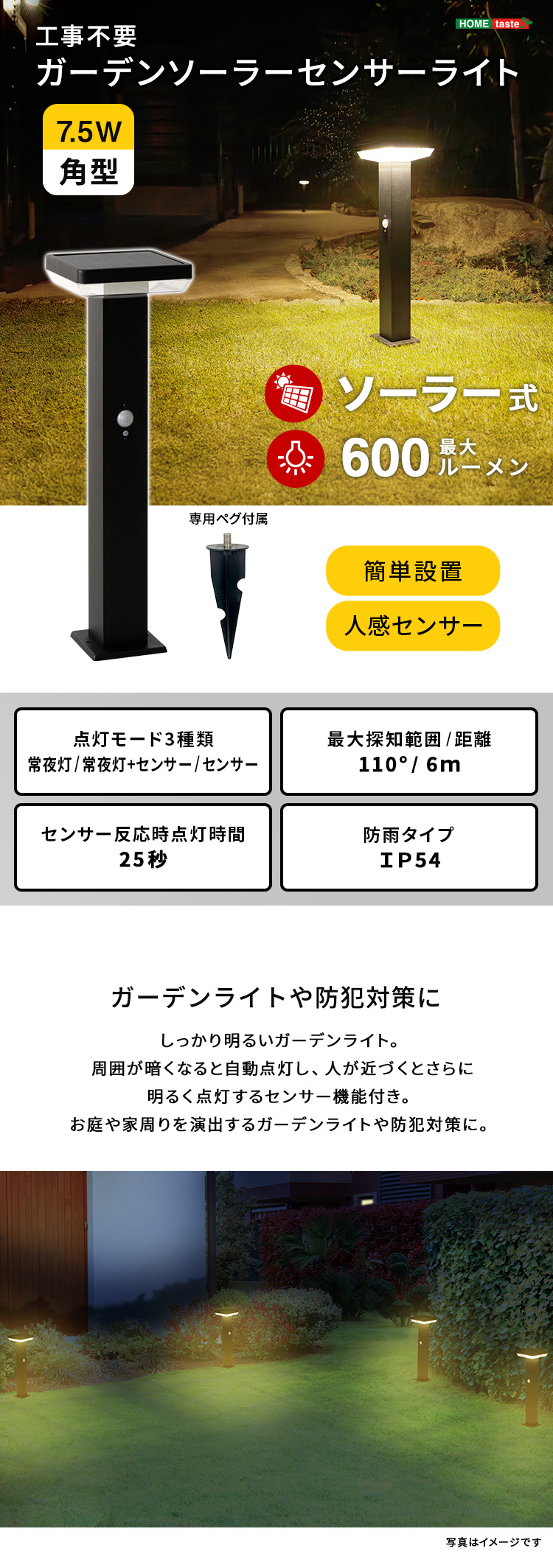 “工事不要!ガーデンソーラーセンサーライト 7.5W角型” の口コミを投稿します