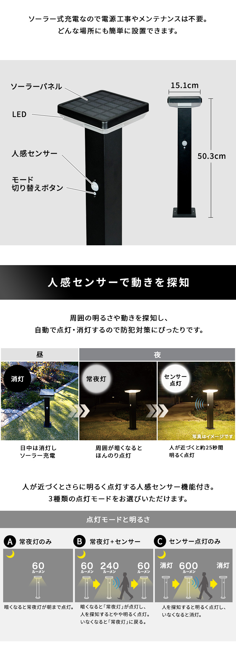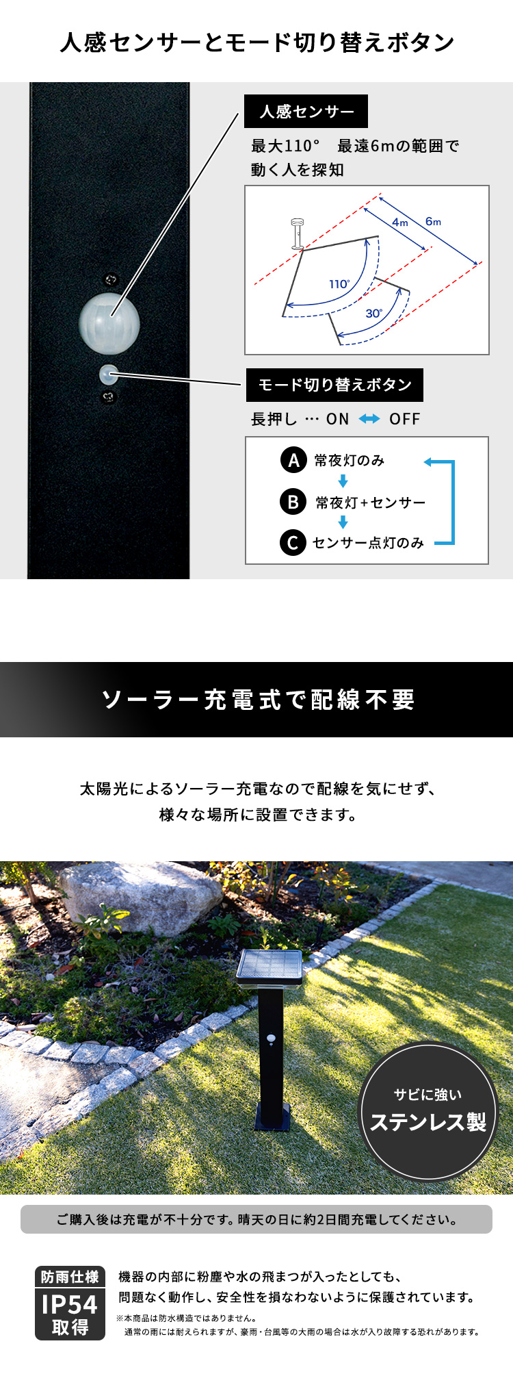 ガーデンライト センサー 発電 簡単 ライト 庭 太陽光