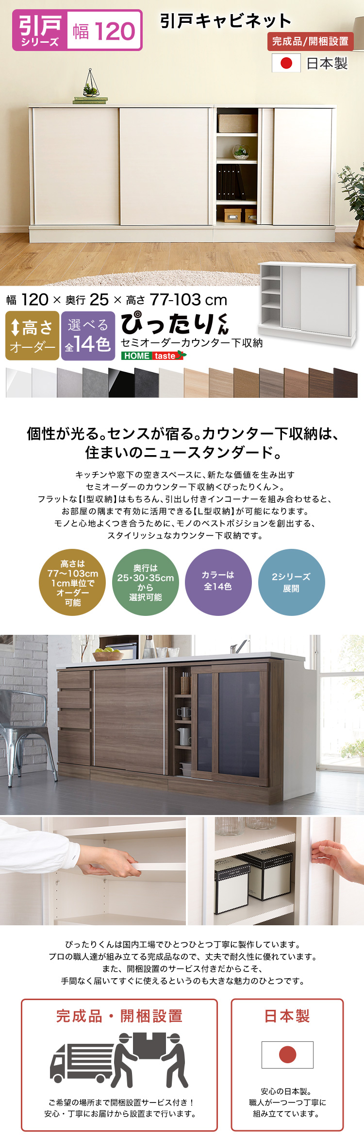 カウンター下収納 キャビネット 幅120cm 日本製