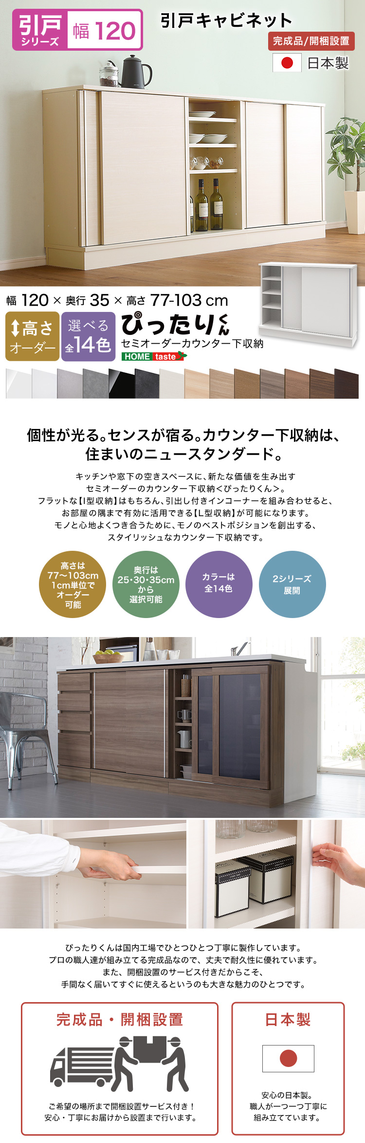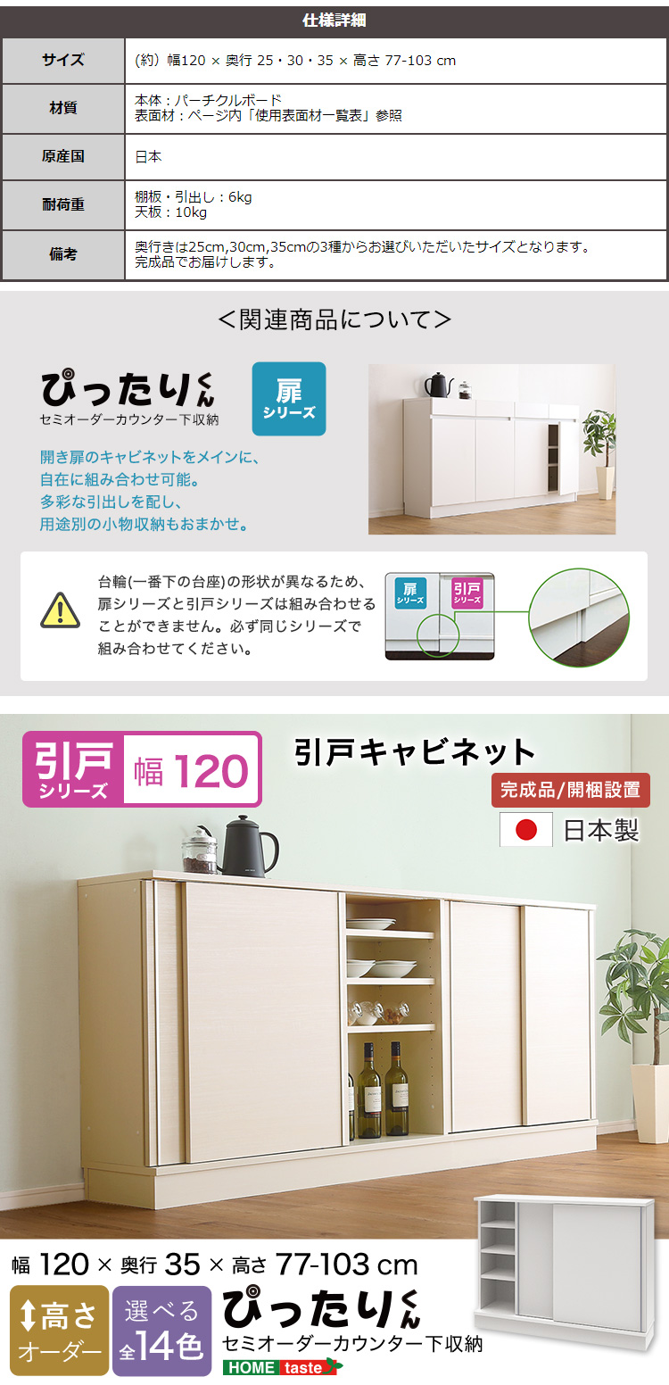 【引戸シリーズ】セミオーダーカウンター下収納ぴったりくん キャビネット 幅120cm×奥行35cm