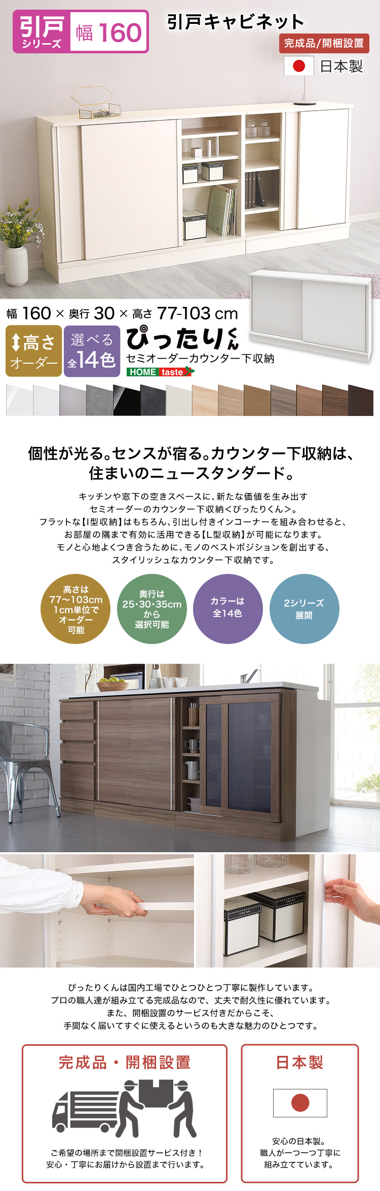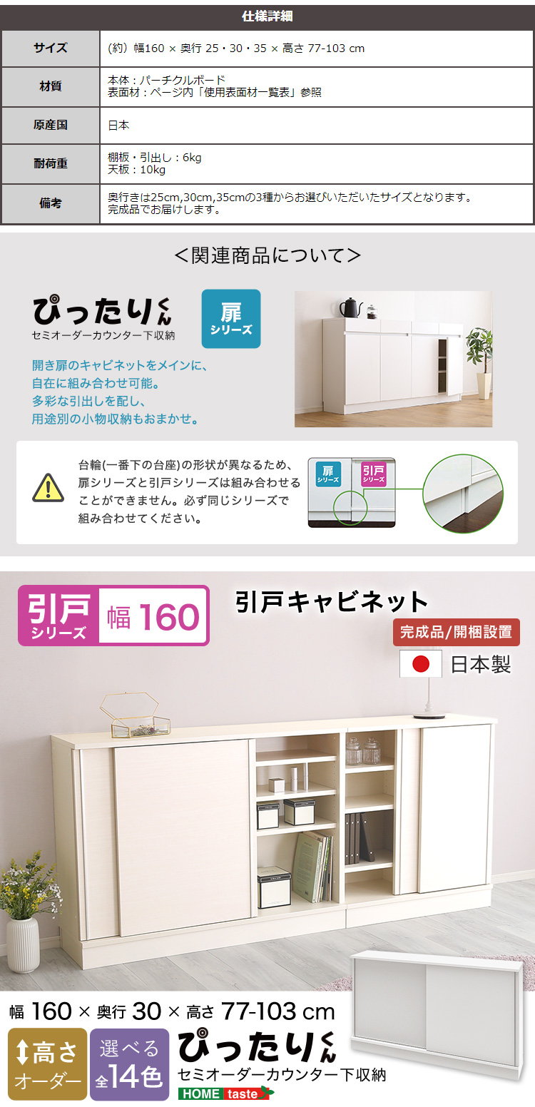 【引戸シリーズ】セミオーダーカウンター下収納ぴったりくん キャビネット 幅160cm×奥行30cm