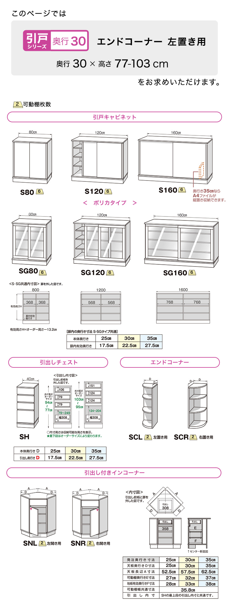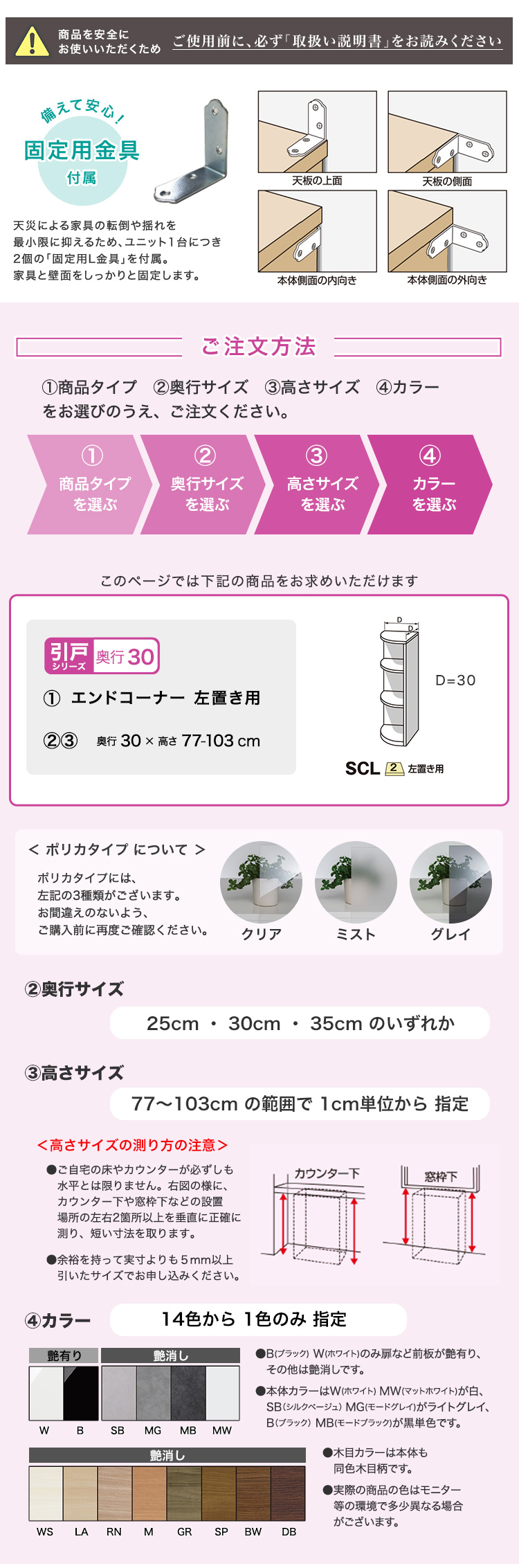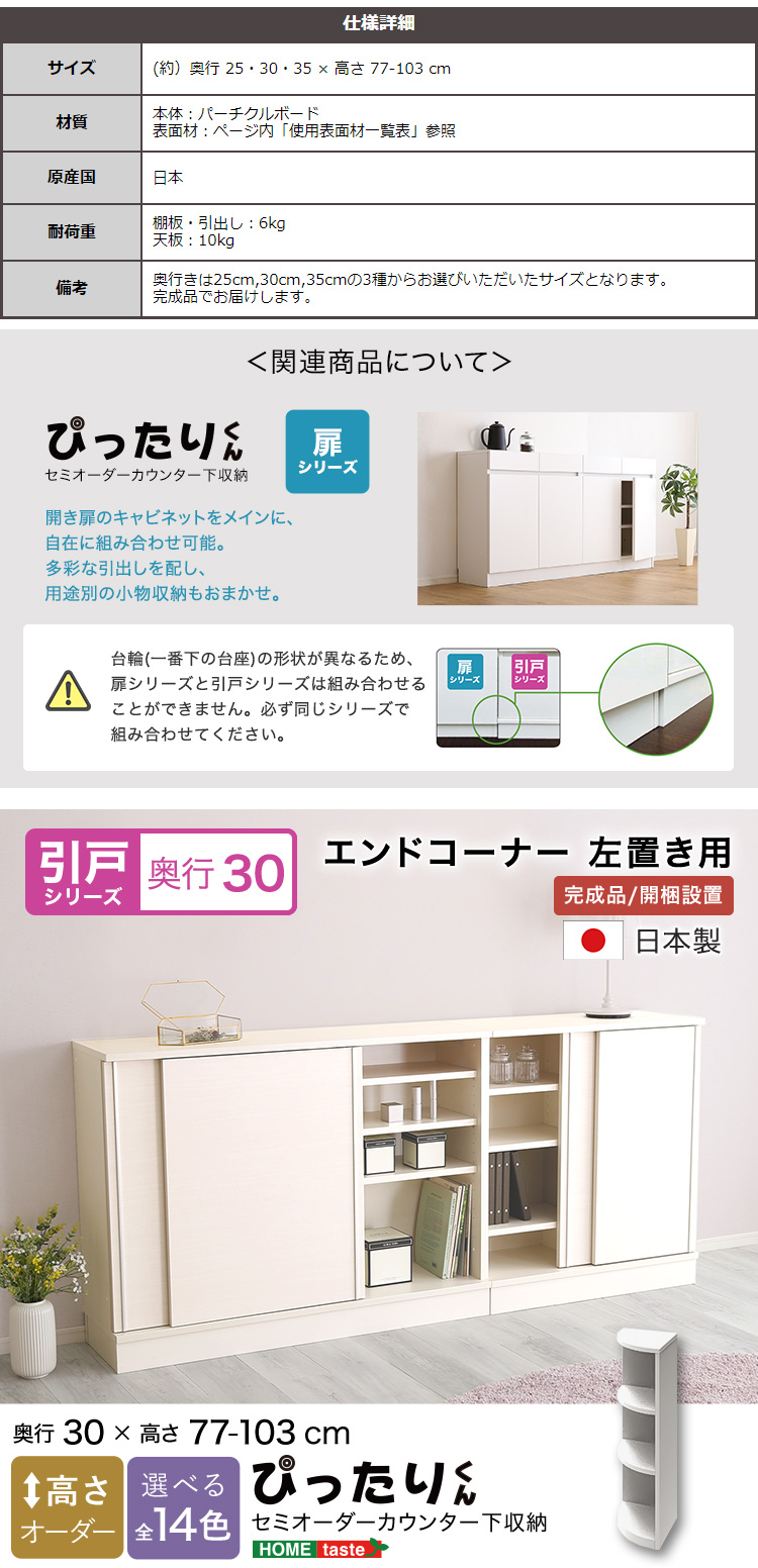 【引戸シリーズ】セミオーダーカウンター下収納ぴったりくん エンドコーナー左置き 奥行30cm