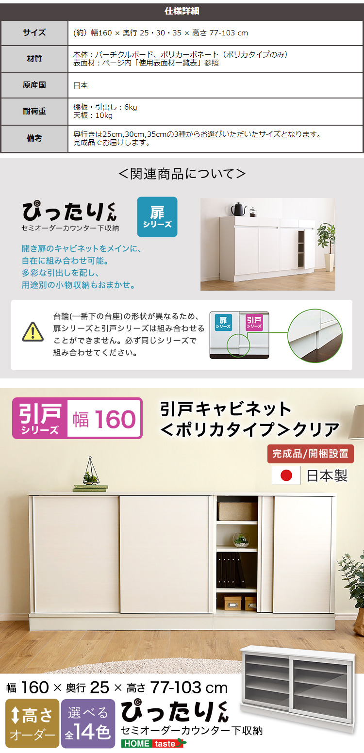 【引戸シリーズ】セミオーダーカウンター下収納ぴったりくん キャビネット(ポリカタイプ クリア) 幅160cm×奥行25cm