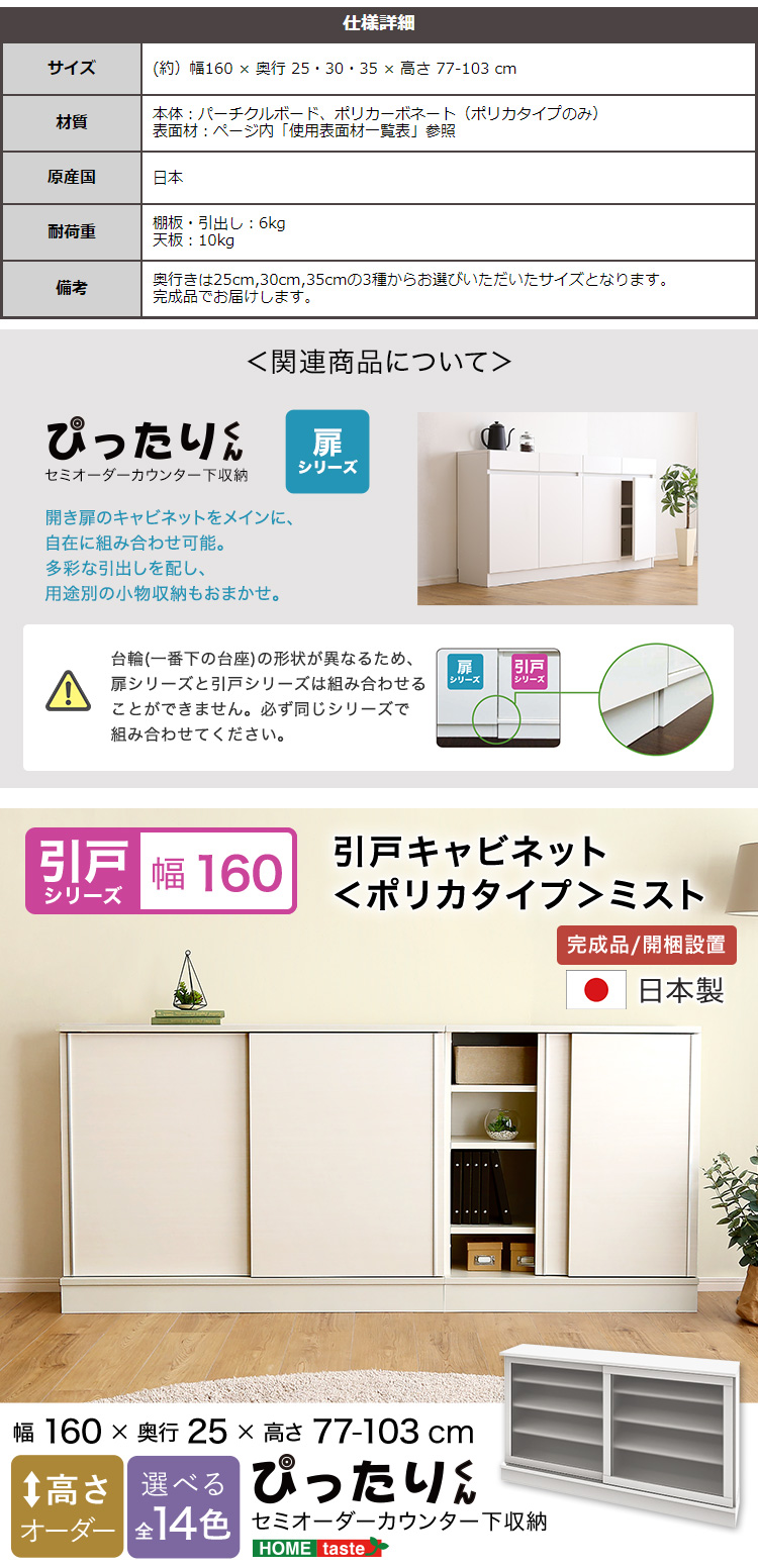 グレイウォルナット木目(艶消), シルクベージュ(艶消), セピアウォルナット木目(艶消), ダークオーク木目(艶消), ブラックウォルナット木目(艶消), ブラック(艶有), ホワイトシカモア木目(艶消), ホワイト(艶有), マットホワイト(艶消), ミディアムオーク木目(艶消), モードグレイ(艶消), モードブラック(艶消), ライトアッシュ木目(艶消), リトモナチュラル木目(艶消)