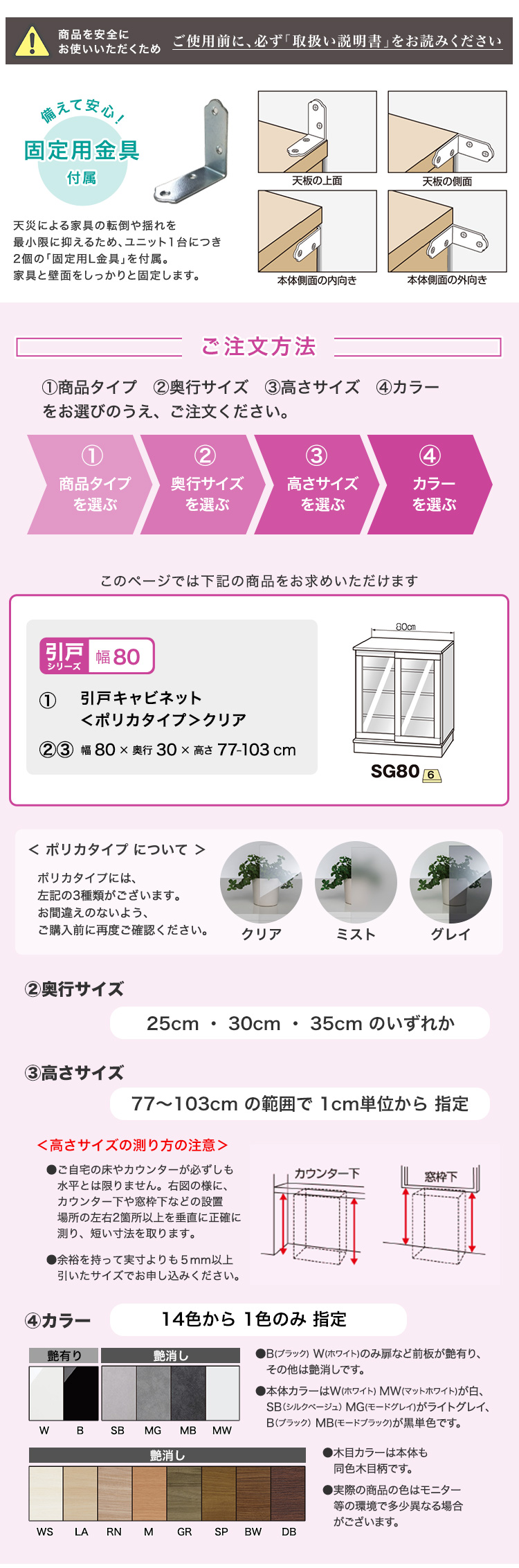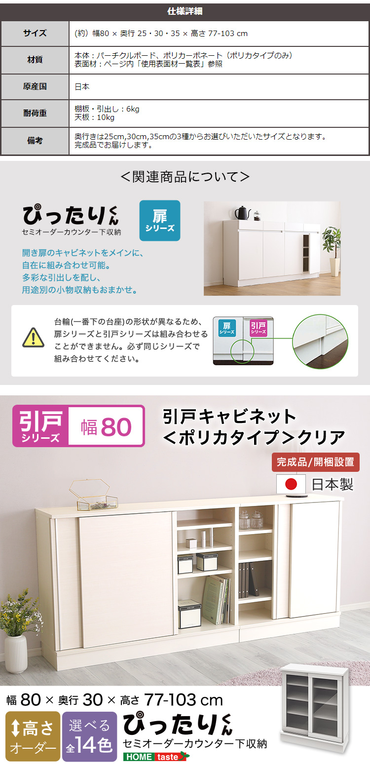 【引戸シリーズ】セミオーダーカウンター下収納ぴったりくん キャビネット(ポリカタイプ クリア) 幅80cm×奥行30cm