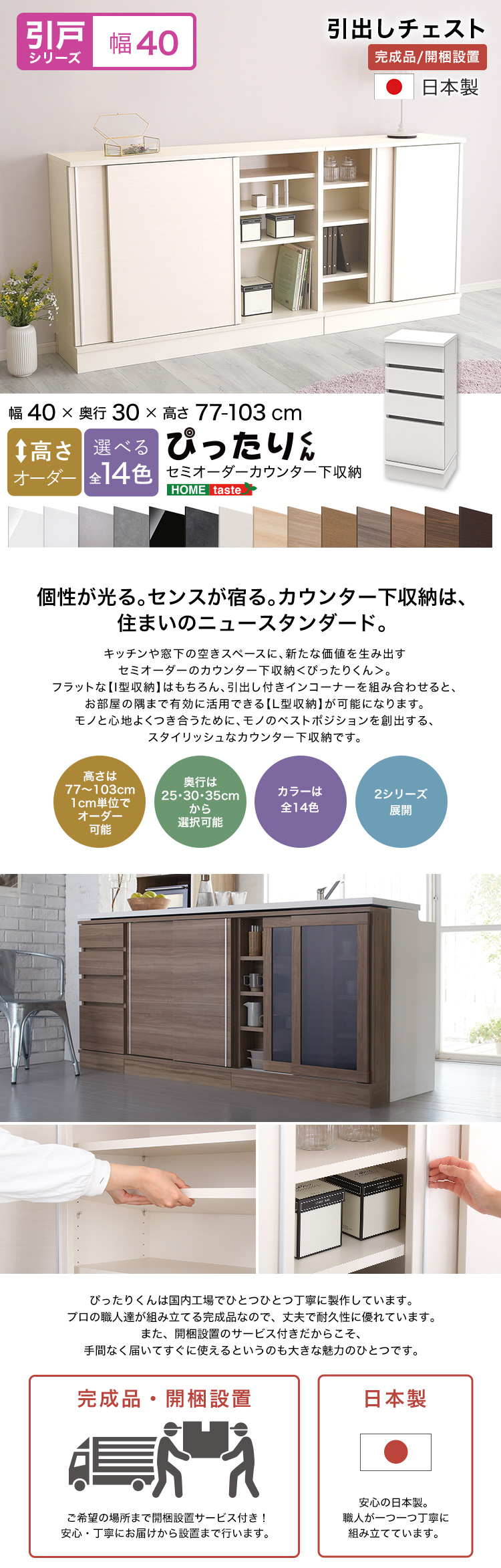 カウンター下収納 チェスト 幅40cm 日本製