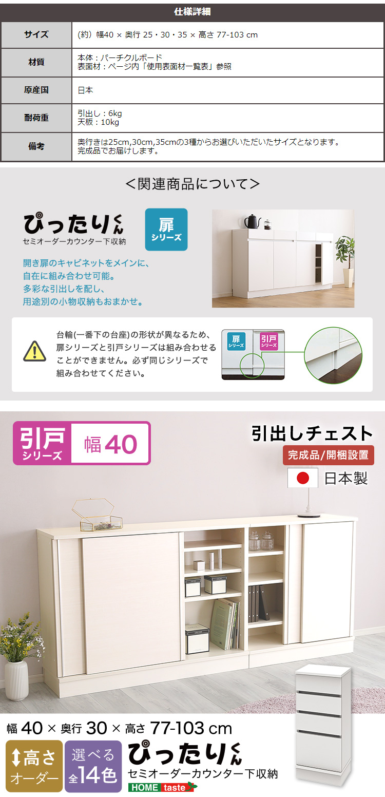 【引戸シリーズ】セミオーダーカウンター下収納ぴったりくん 引出しチェスト 奥行30cm