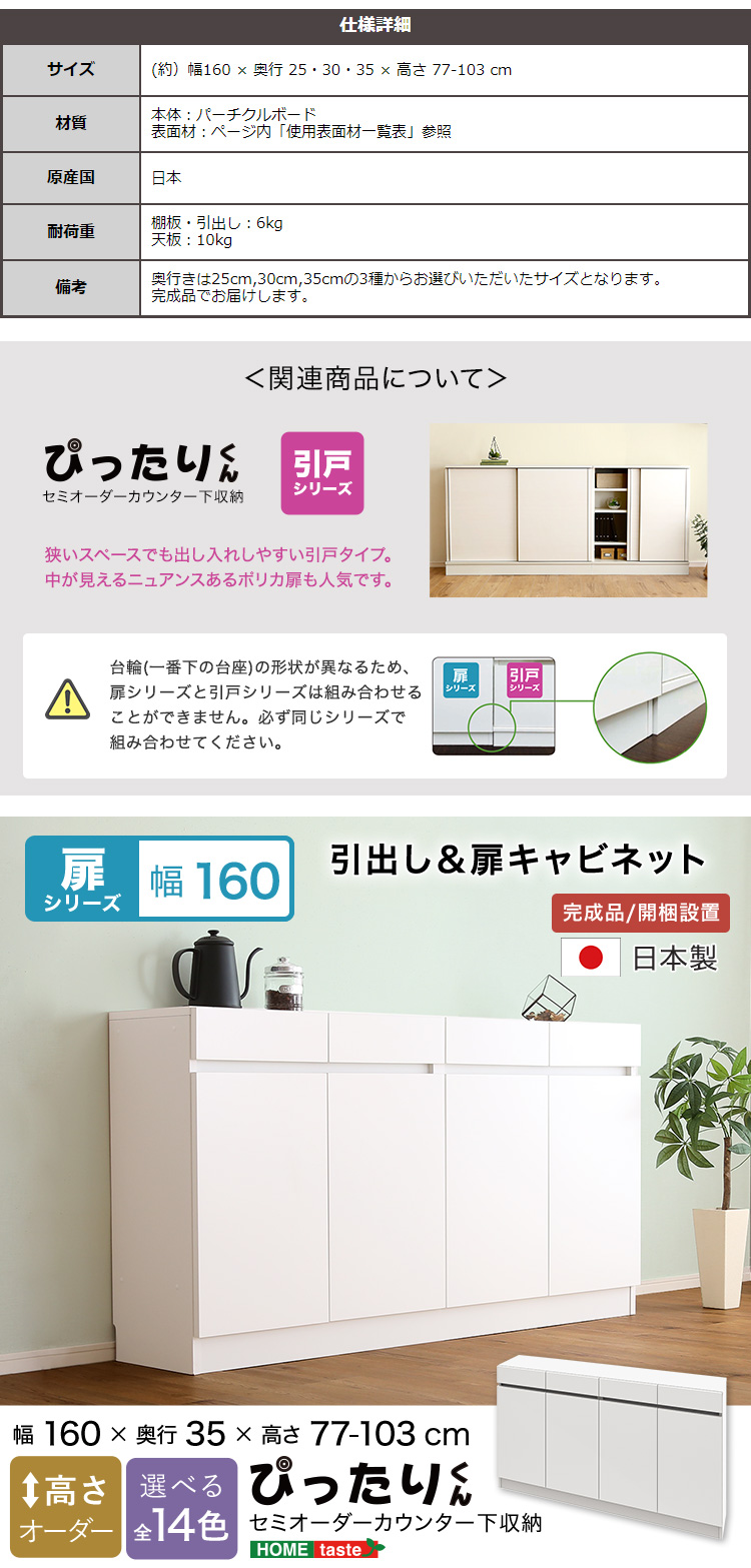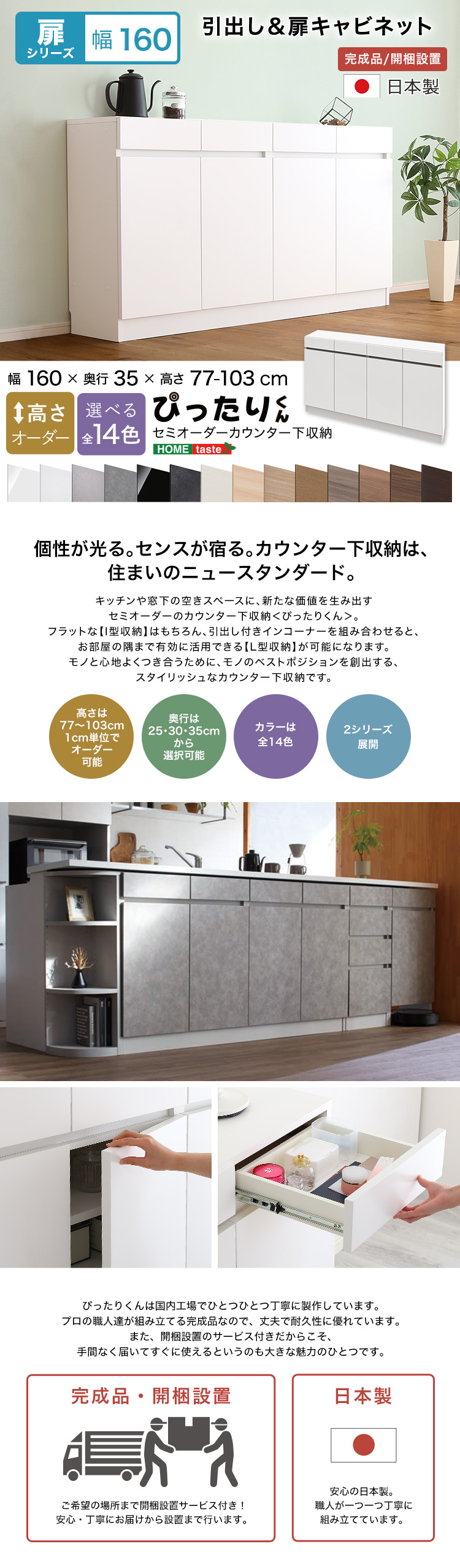 【扉シリーズ】セミオーダーカウンター下収納ぴったりくん キャビネット 幅160cm×奥行35cm
