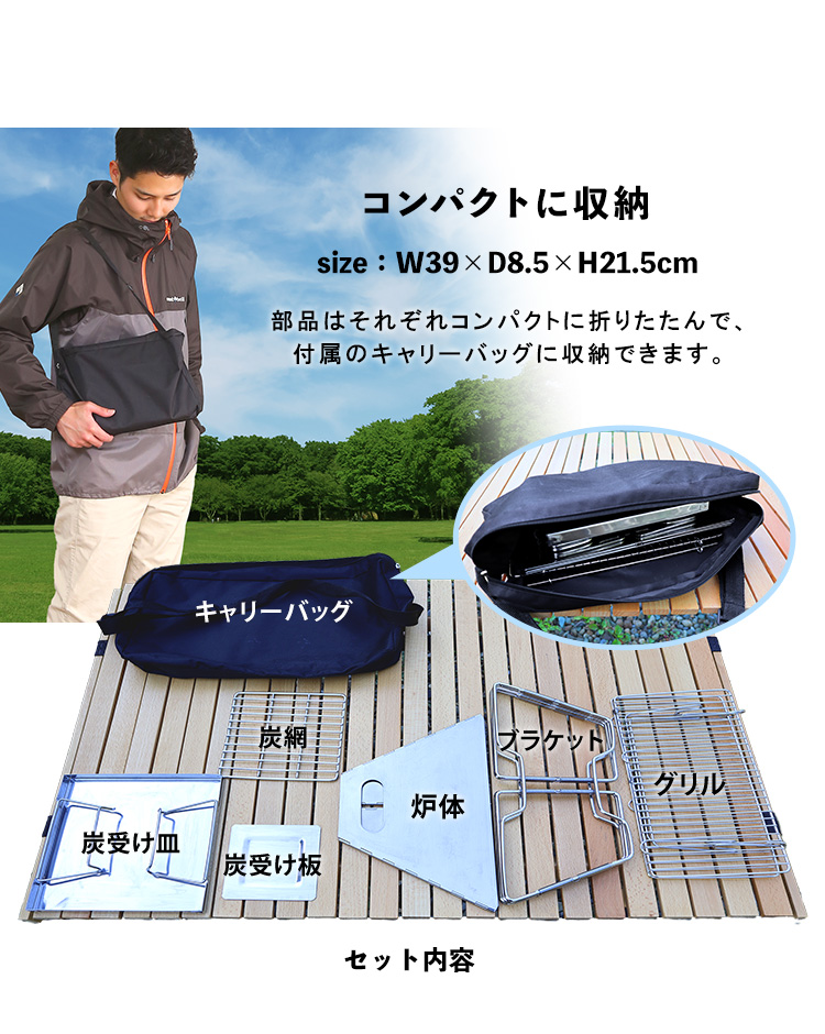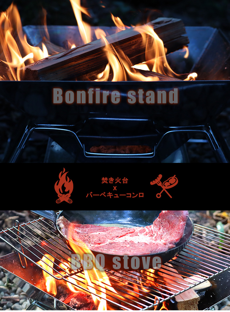 焚き火台 アウトドア BBQ 収納バッグ付き コンパクト