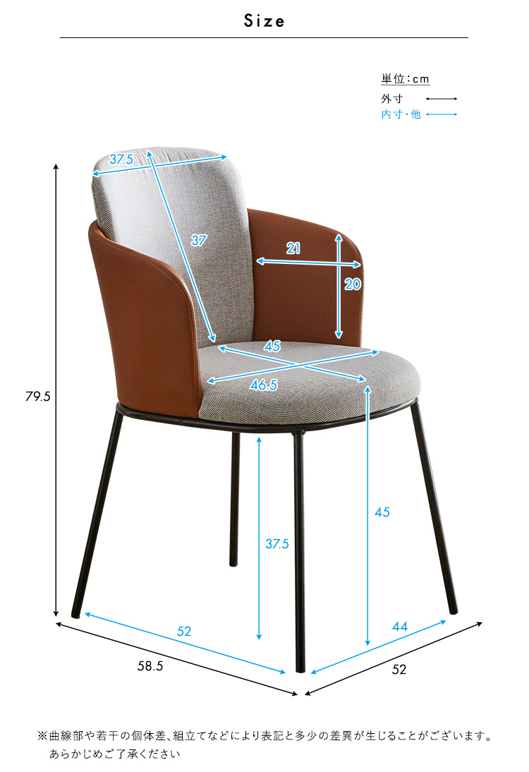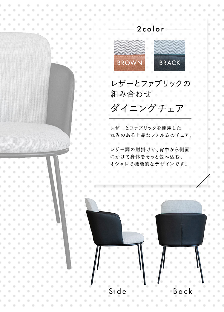 レザーとファブリックの組み合わせ ダイニングチェア 1脚単品【Alexi】