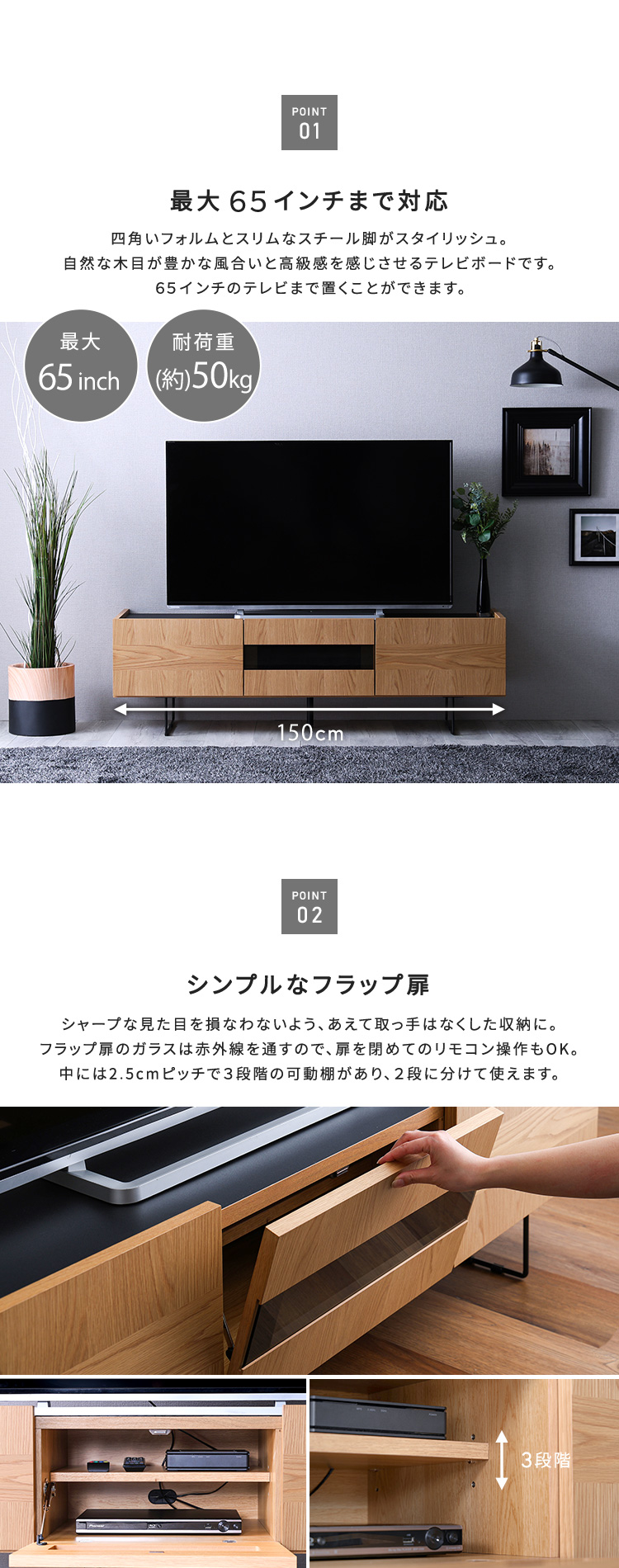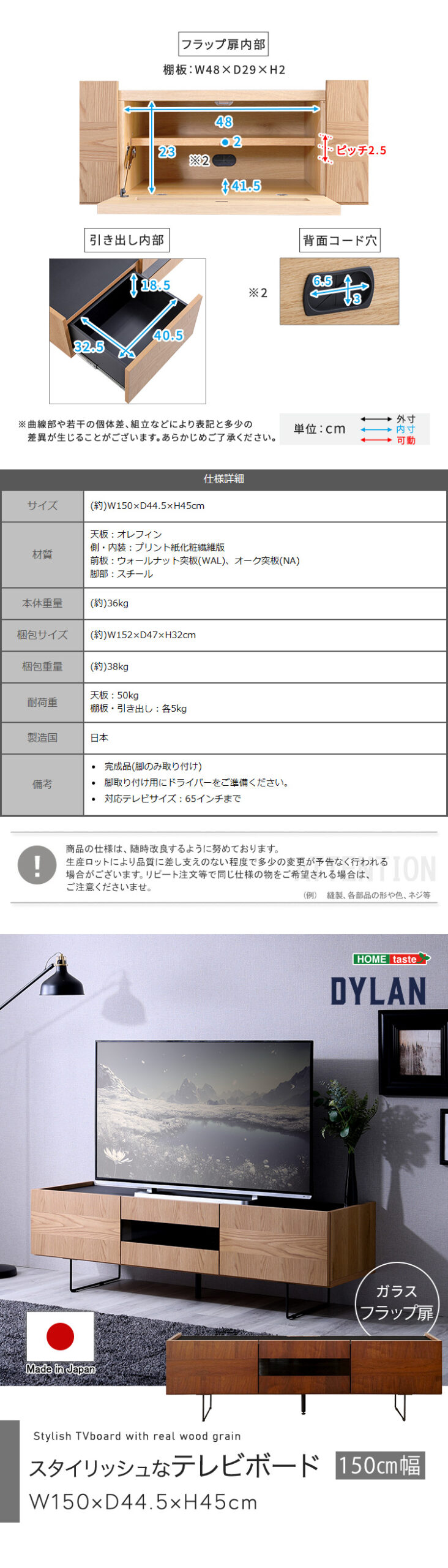 日本製 スタイリッシュなテレビボード 150cm幅 【Dylan-ディラン-】