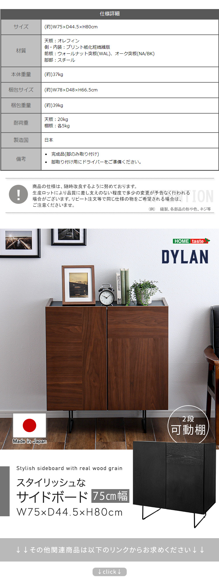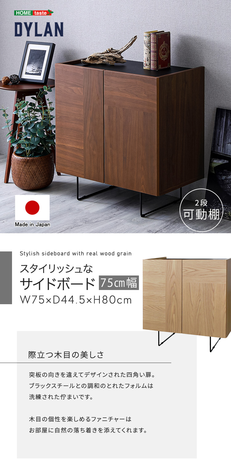 日本製 スタイリッシュなサイドボード 75cm幅 【Dylan-ディラン-】