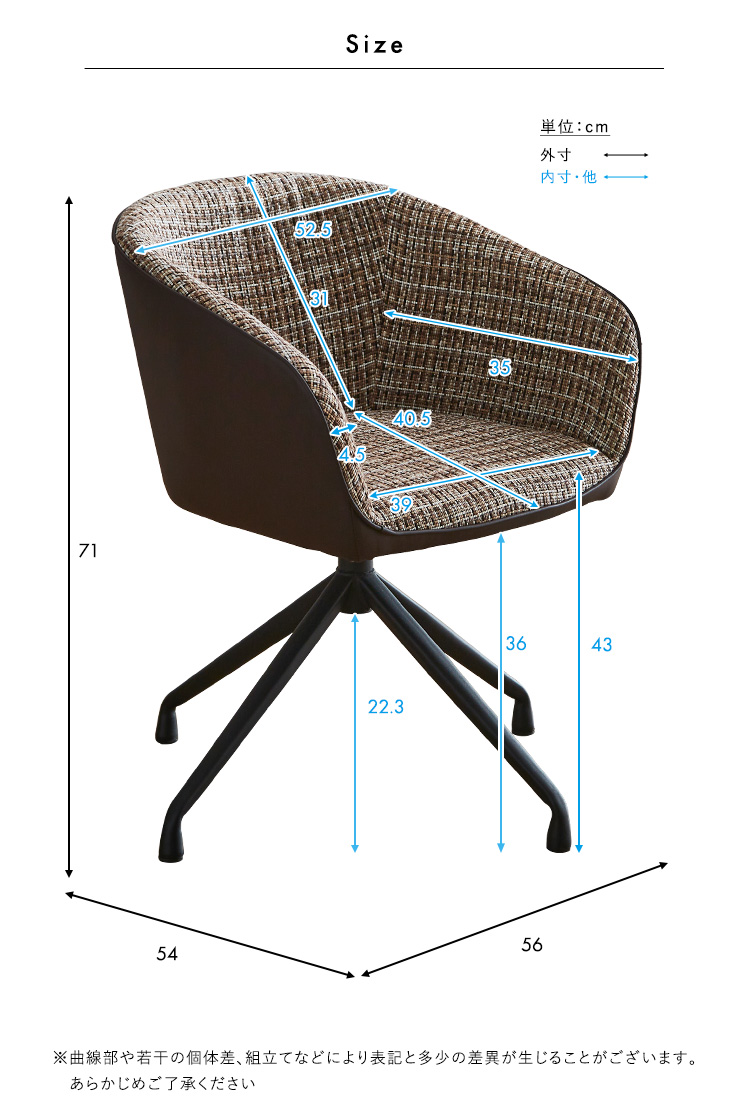 回転式 ファブリックダイニングチェア