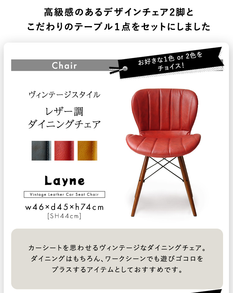 “レザー調ダイニングチェア2脚 75㎝幅テーブル 3点セット 【Layne×Umbure】” の口コミを投稿します