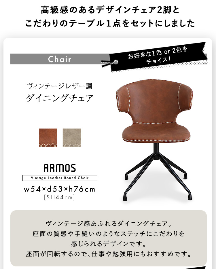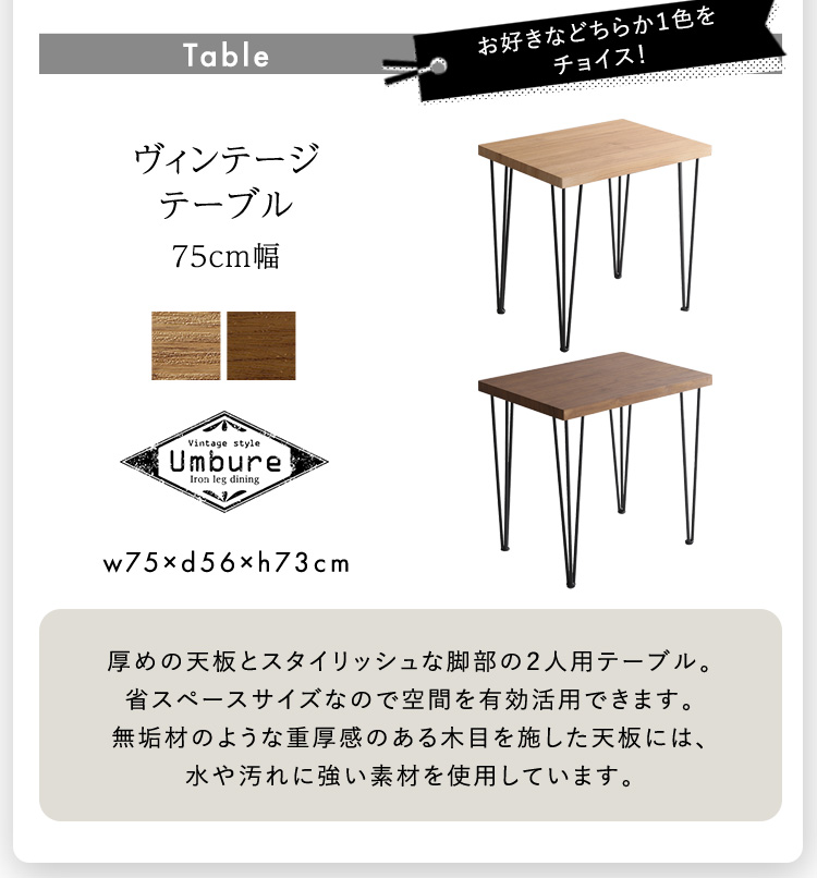 ダイニング 2人掛け 3点セット おしゃれ ヴィンテージ