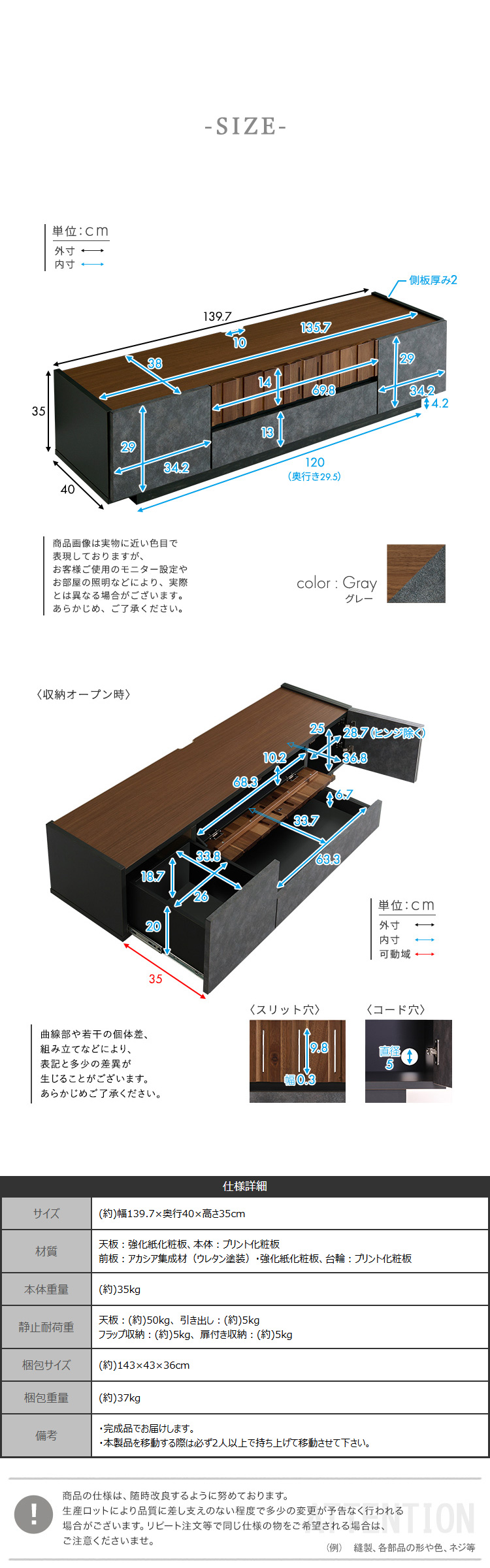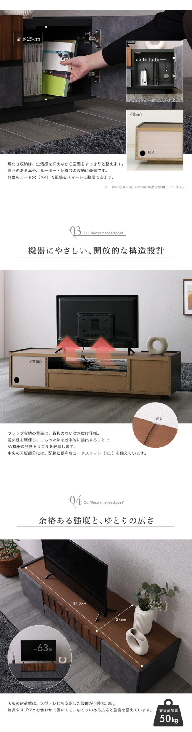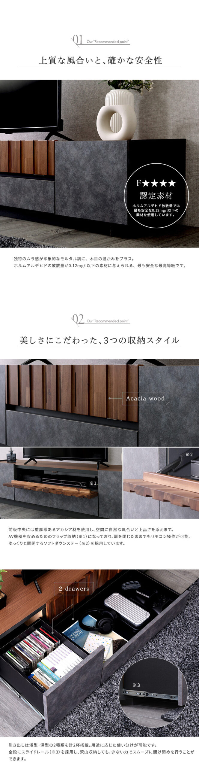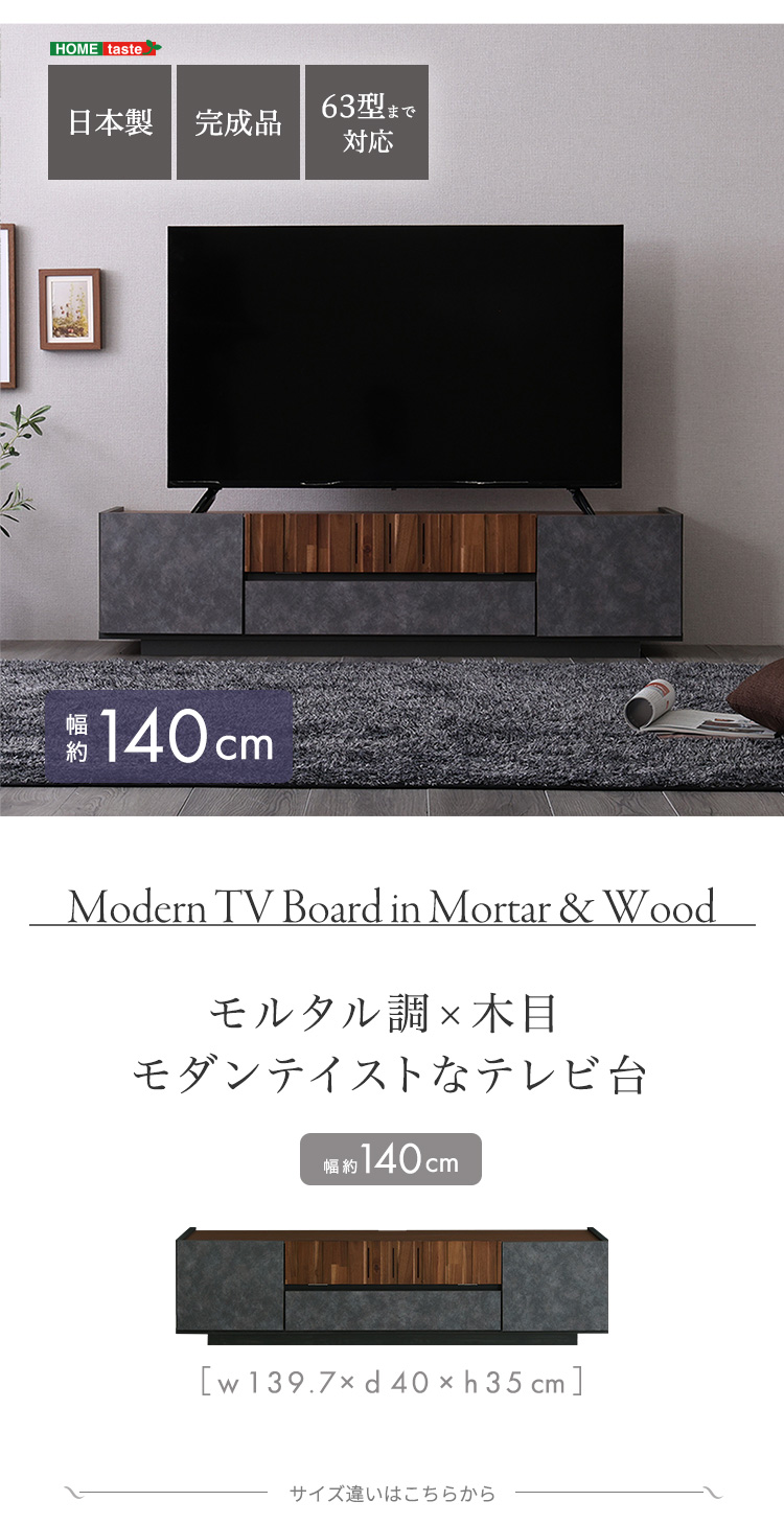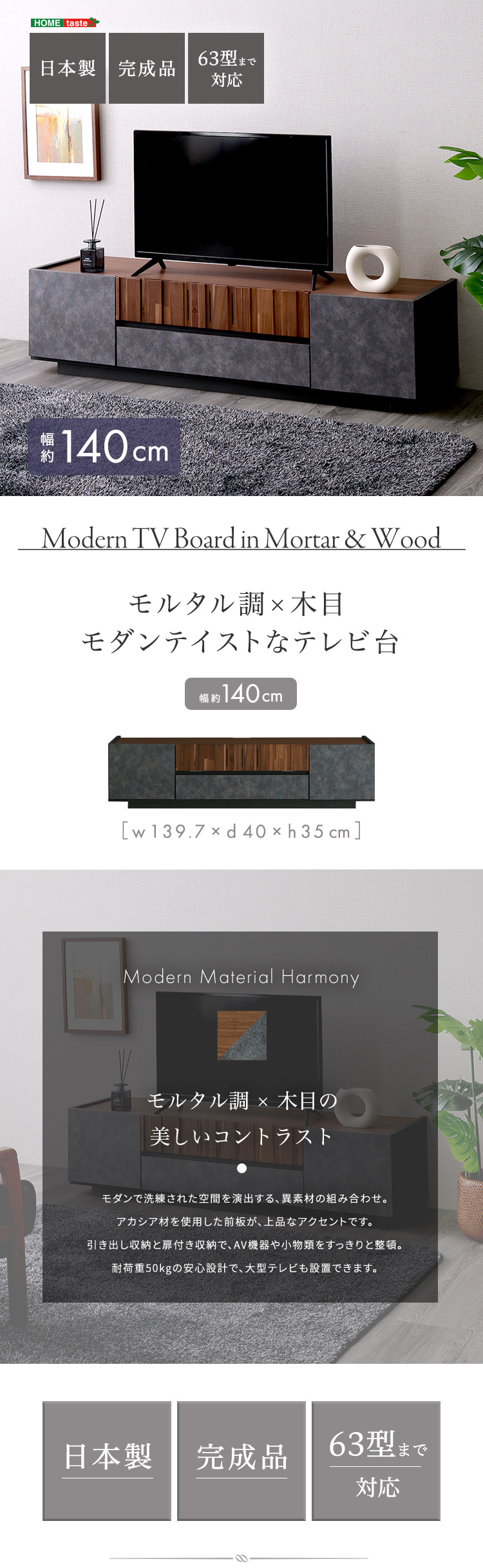 モルタル調×木目 モダンテイストなテレビ台 140cm幅