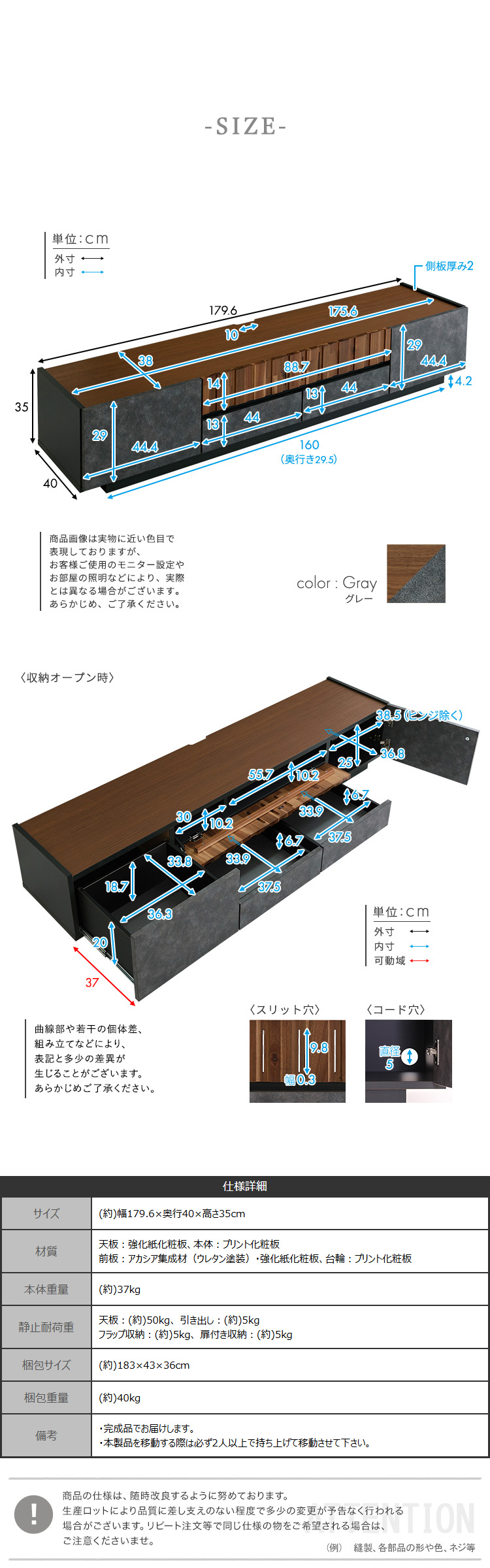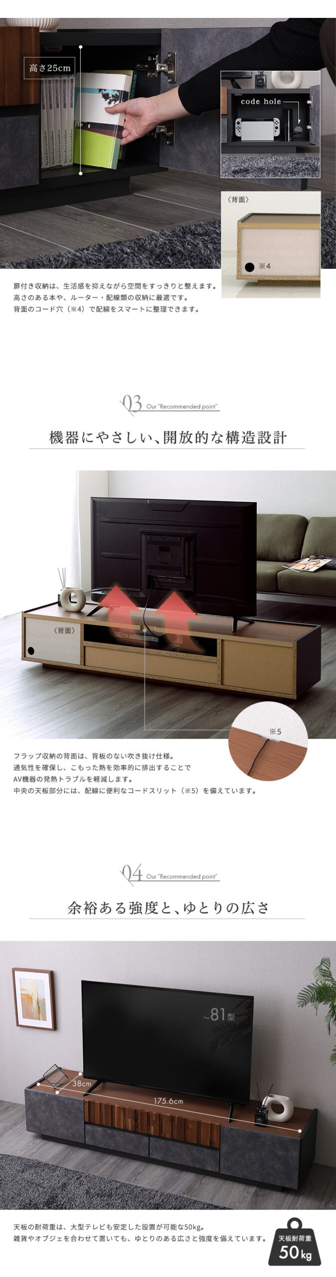 モルタル調×木目 モダンテイストなテレビ台 180cm幅