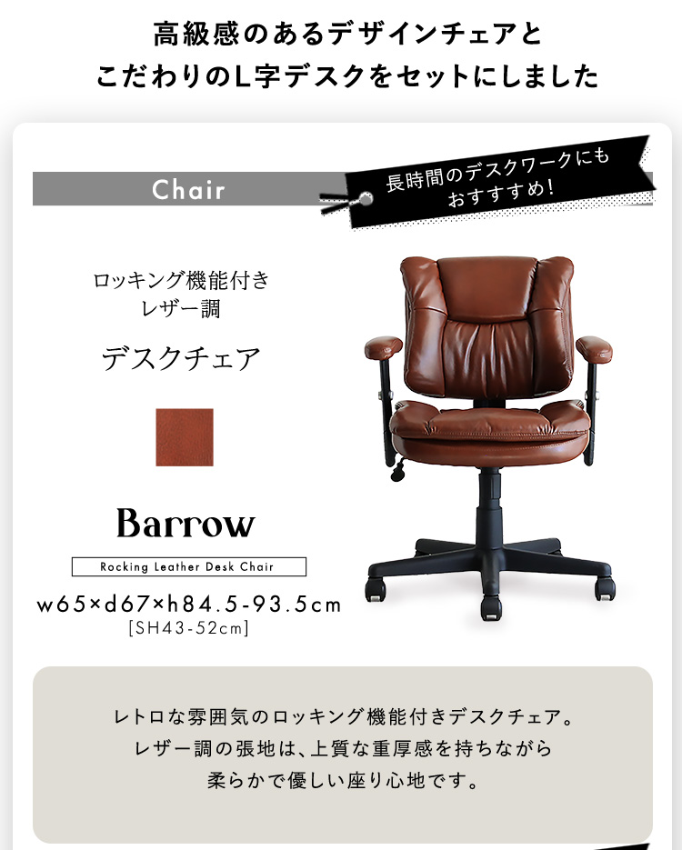 ロッキング機能付きレザー調デスクチェア 2点セット【Barrow×Lubbock】