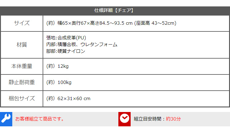 “ロッキング機能付きレザー調デスクチェア 2点セット【Barrow×Lubbock】” の口コミを投稿します