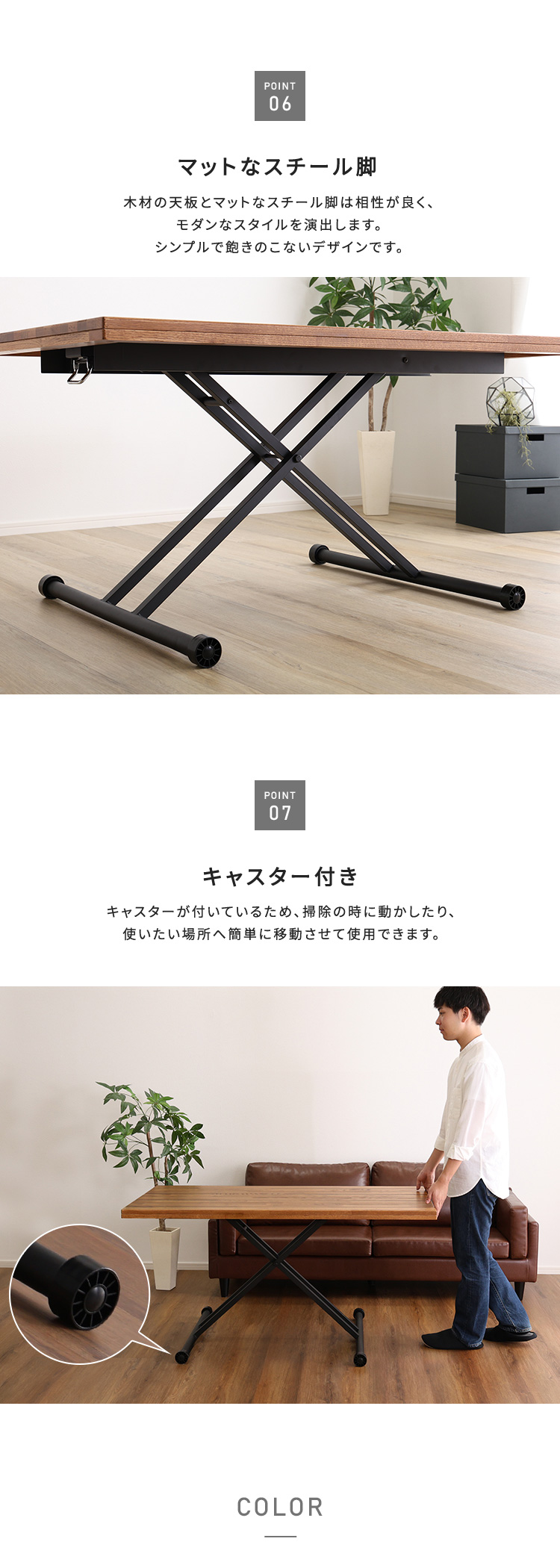 テーブル 高さ調節 コンパクト 昇降 机
