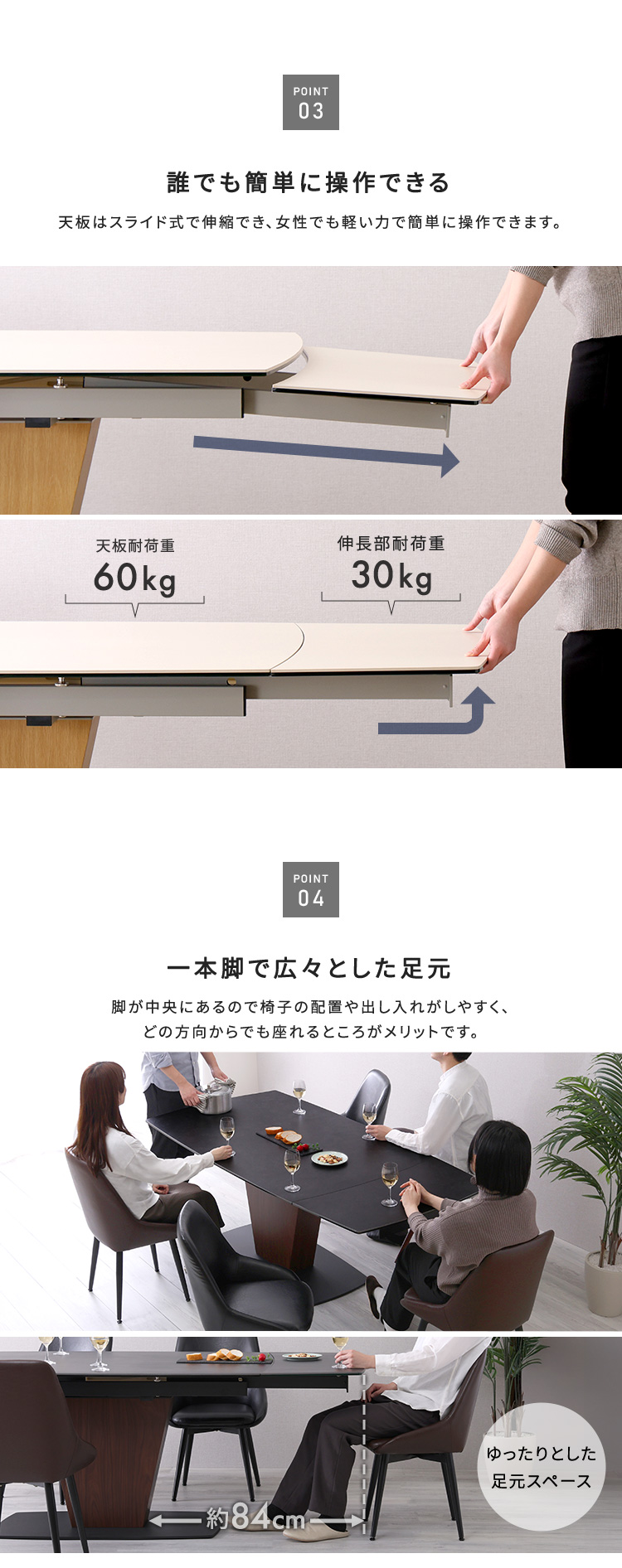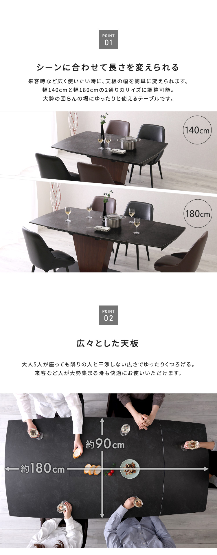 伸長式 ダイニングテーブル 4人掛け 5人掛け 6人掛け