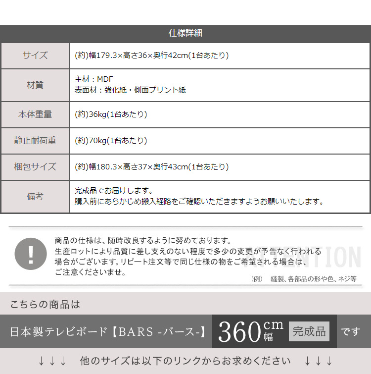 “日本製 テレビ台 テレビボード 360cm幅 【BARS-バース-】” の口コミを投稿します