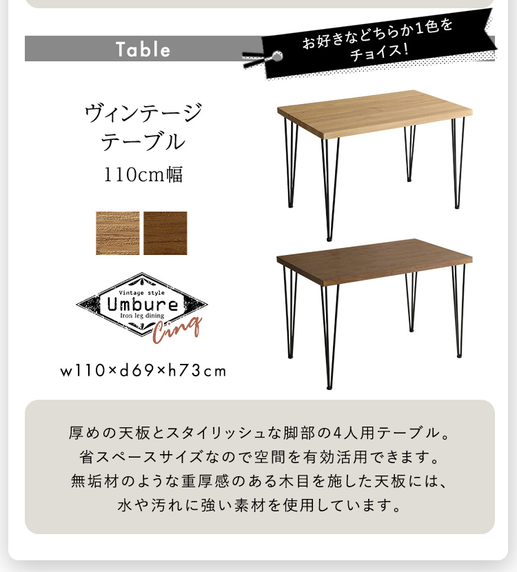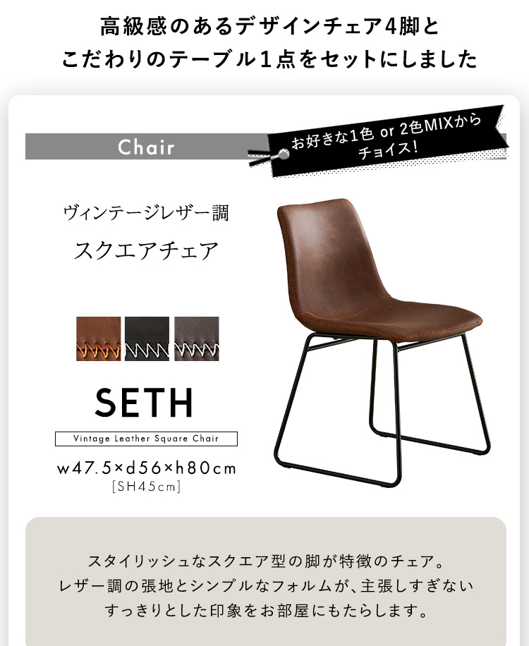 スクエアチェア4脚 110㎝幅テーブル 5点セット 【SETH×Umbure】