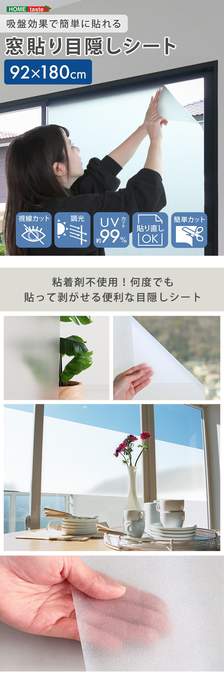 窓ガラスフィルム 目隠し シート 水なし 簡単 はがせる