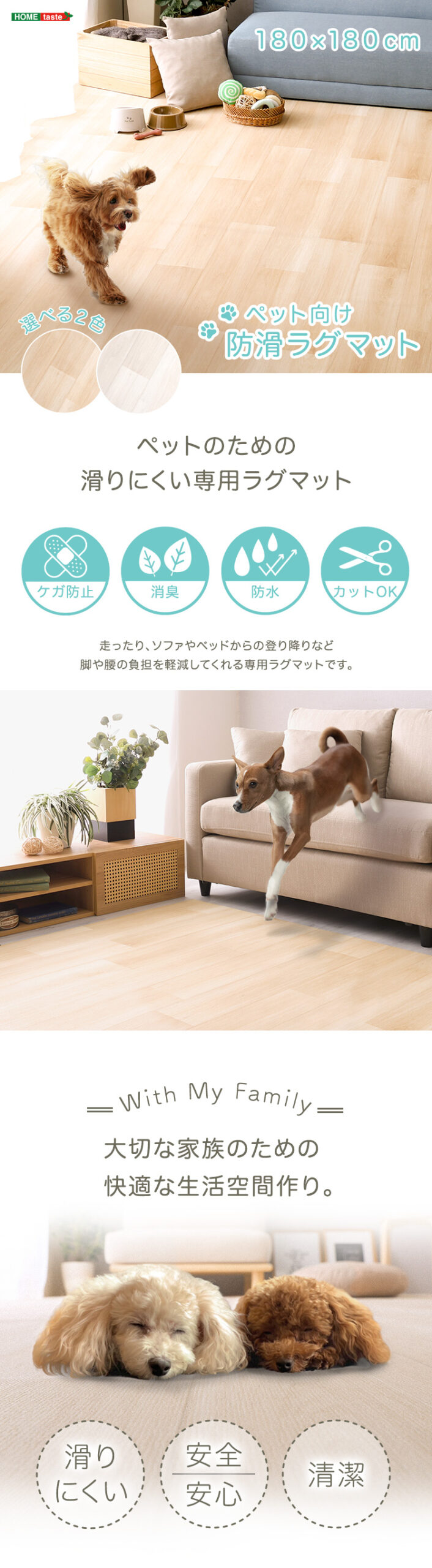 ペット 防水 ラグ カーペット ズレ防止シート付き