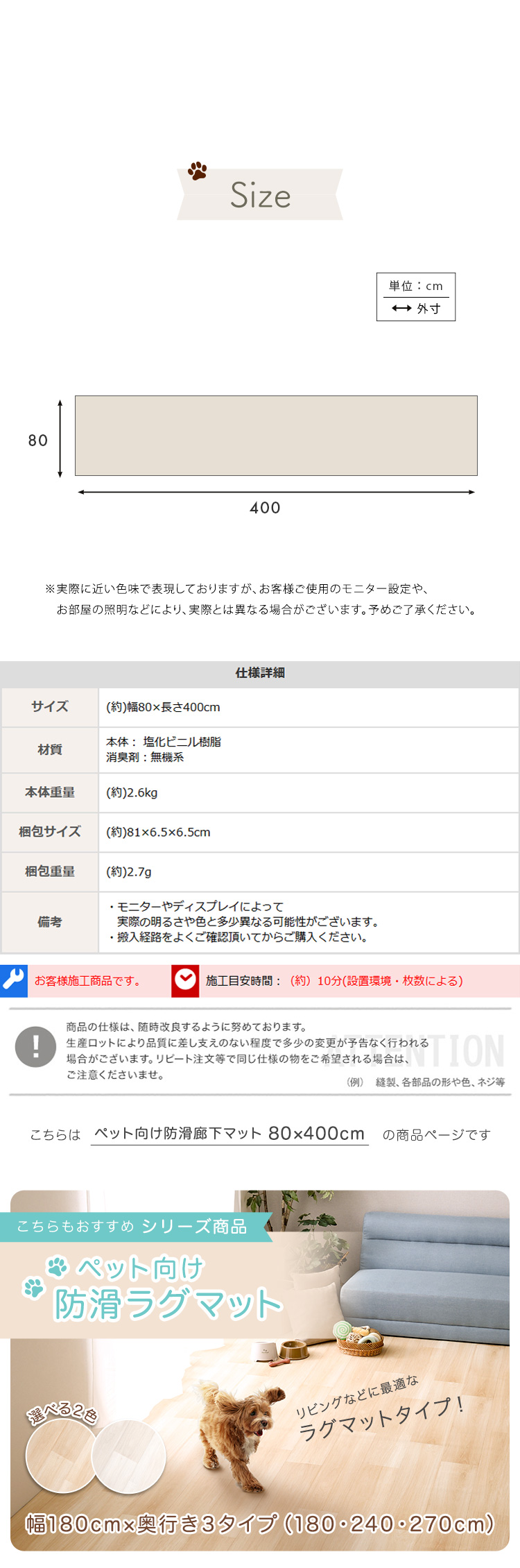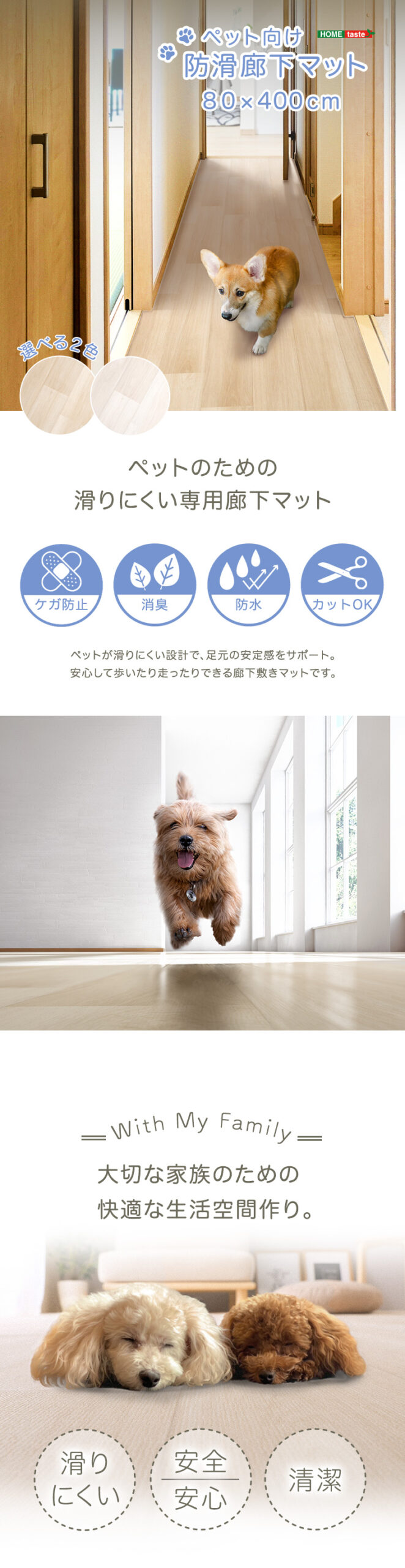 ペット 防水 ズレ防止シート付き ペットマット 廊下